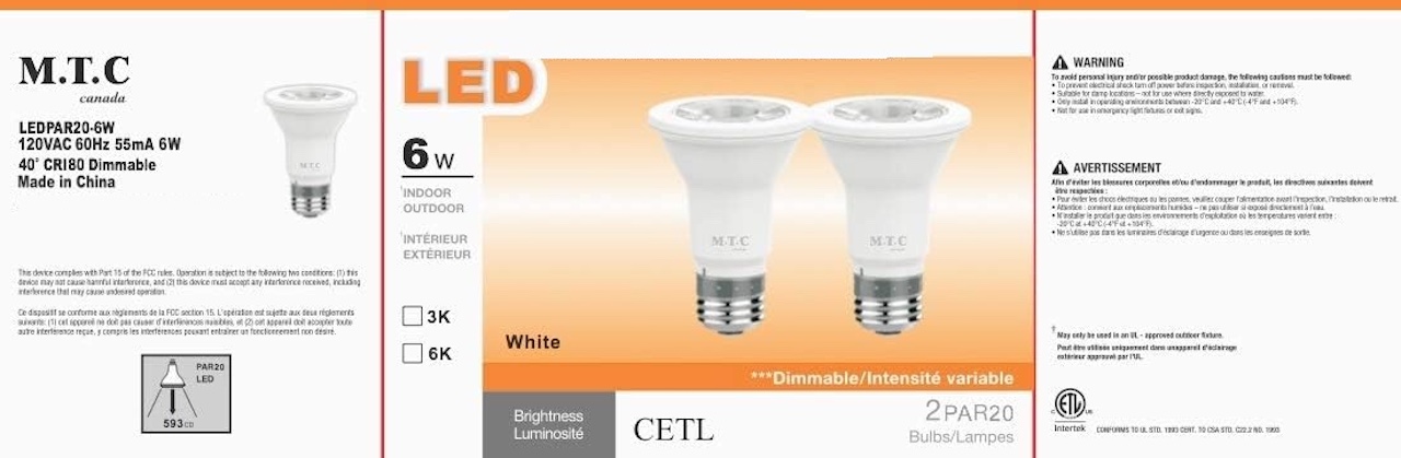 LED Par 20 Bulb 6W (6W=60W Halogen), Dimmable 660 Lumens,6000K , 3000K CETL Certified