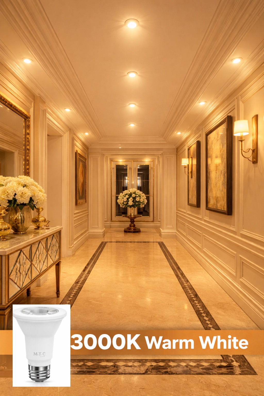 3000K Warm White – soft, cozy lighting for living spaces