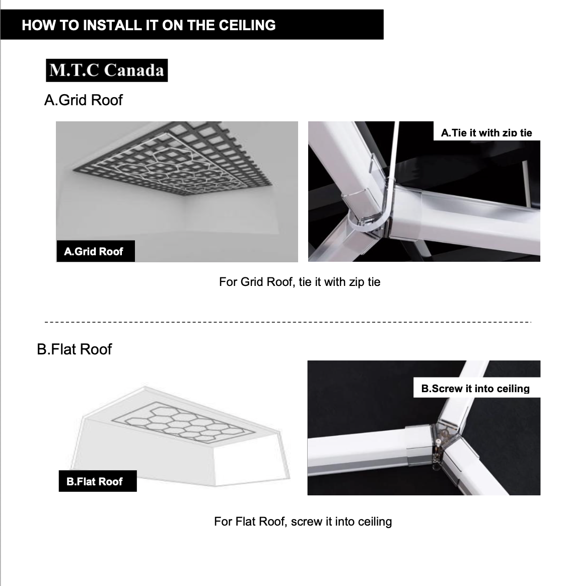 M0755-5-RGB : M.T.C Canada LED Hexagon RGB Garage Light – 5 Hex Design (95" x 70"), 144W, App & 2.4G Controller,