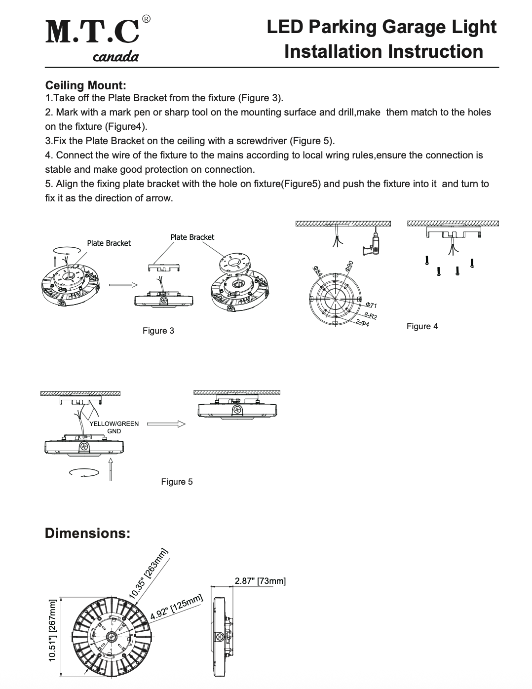 M0837 -‑M.T.C Canada LED Parking/Garage Canopy Light Watt :90 watt 12,600lm 6000K 120VAC Cul Certified