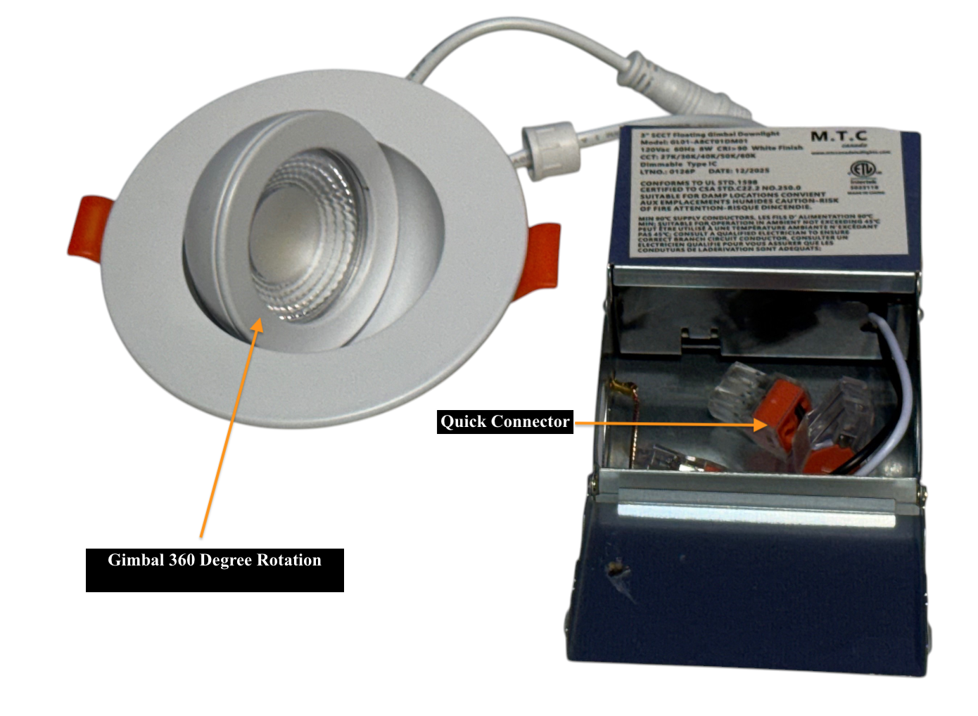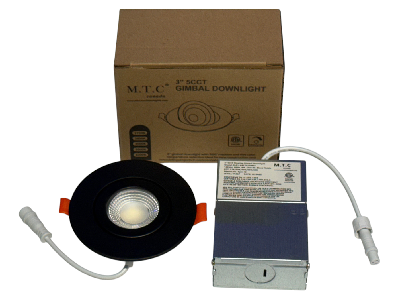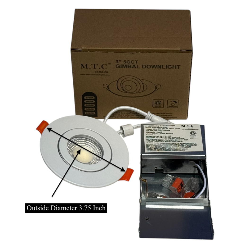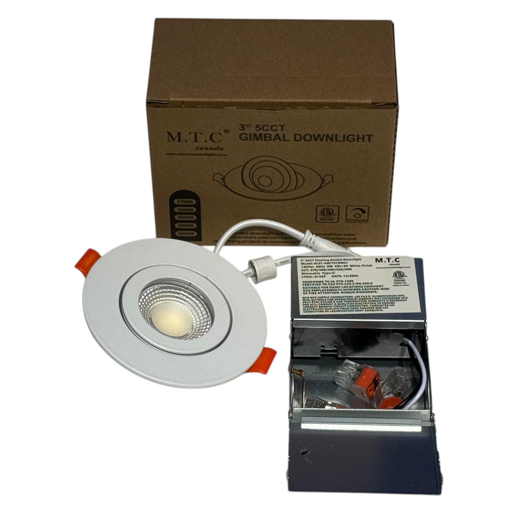 The MTC Canada 3” 8W 5CCT Gimbal LED Downlight delivers powerful, energy-efficient illumination in a compact and adjustable design. Engineered for both residential and commercial applications, this fixture features full 360° rotation for precise directional lighting—ideal for accent walls, artwork, kitchen areas, hallways, and retail displays.