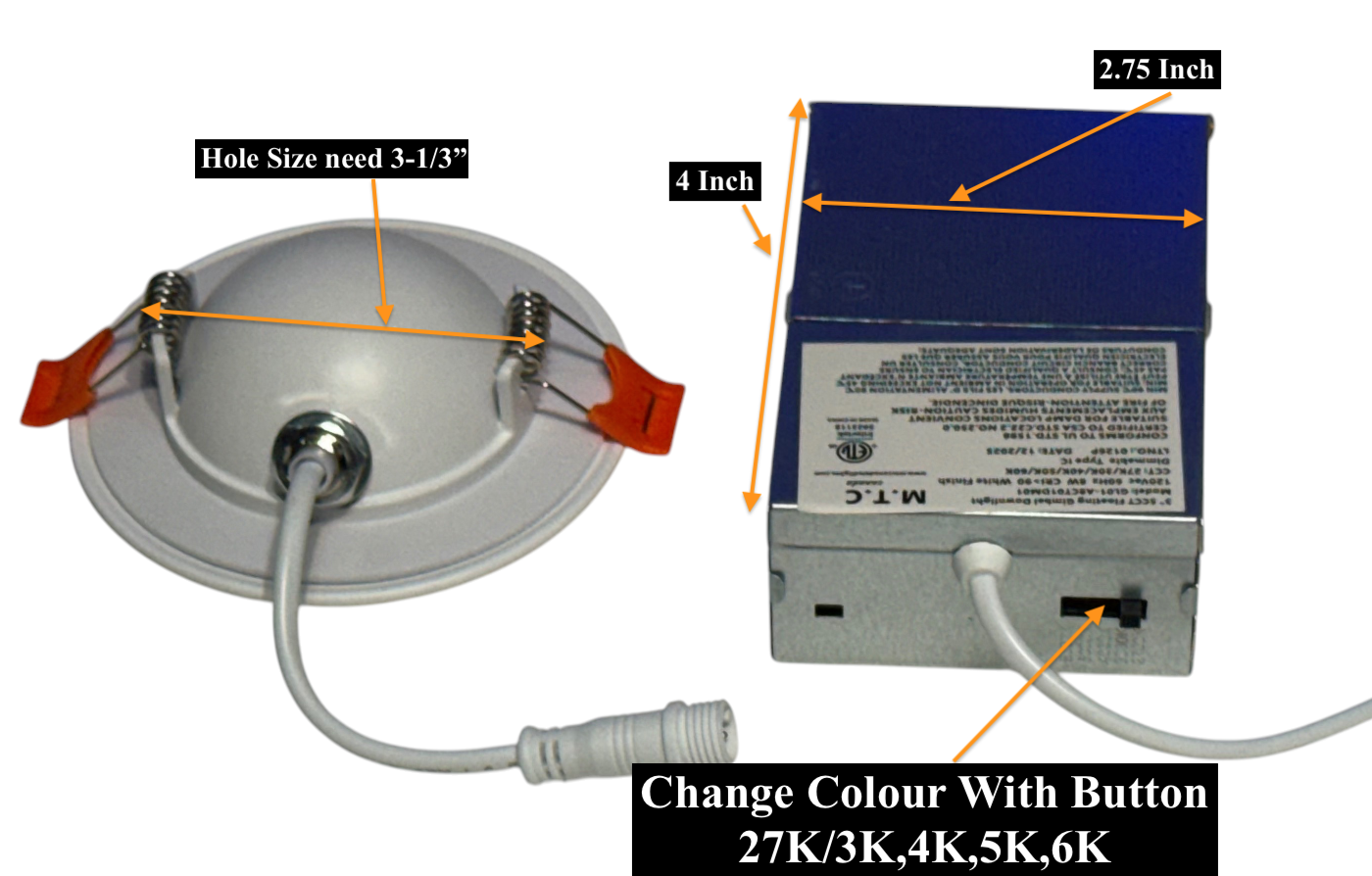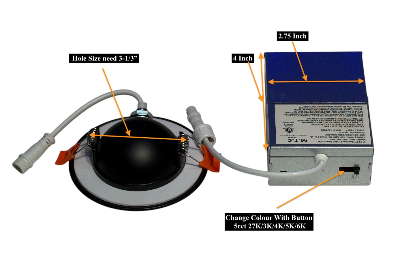 With integrated 5CCT selectable color temperature (2700K–6000K), you can easily customize the ambiance during installation. Operating at 120V and compatible with TRIAC dimmers, it offers smooth and reliable dimming performance.