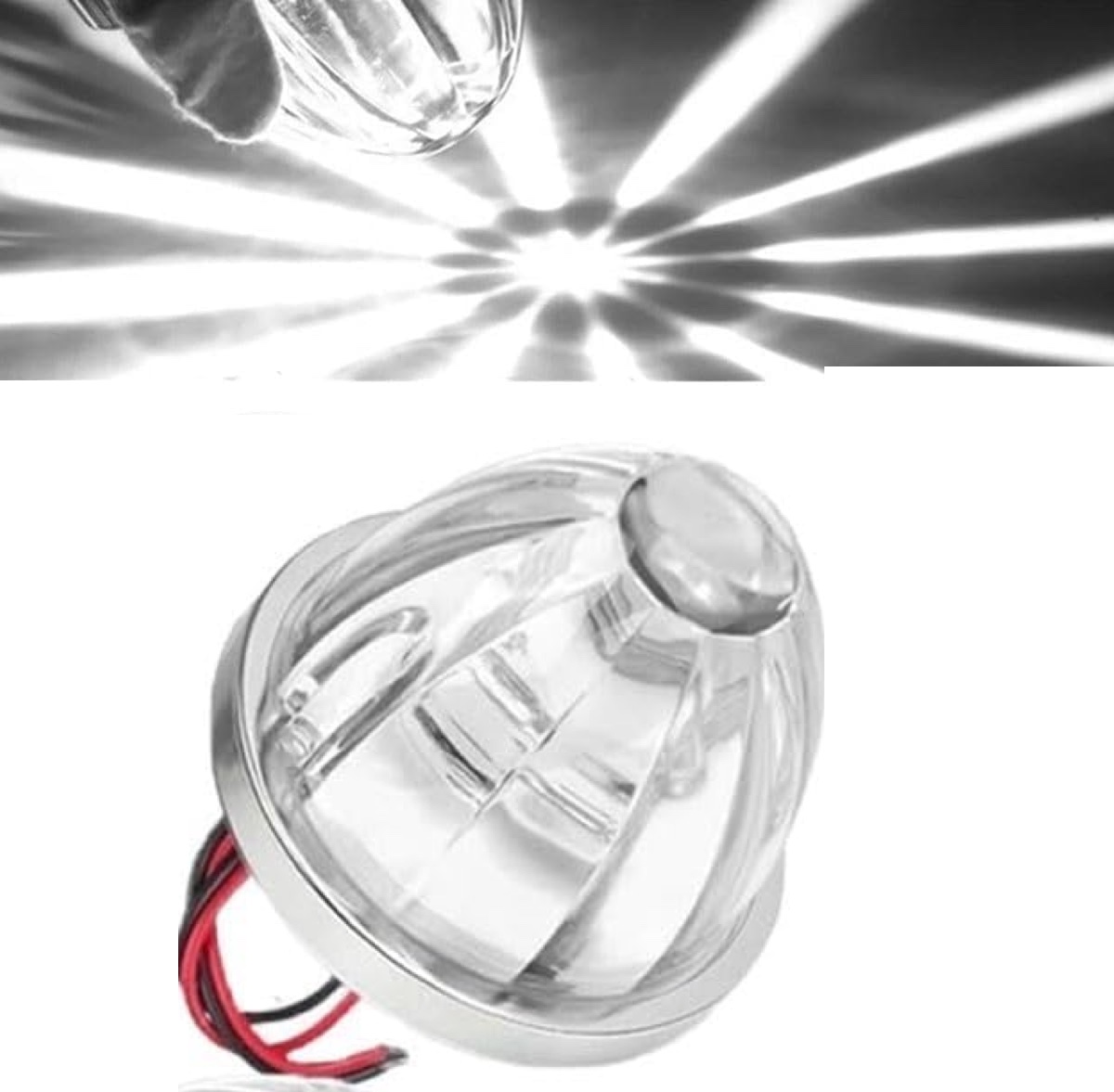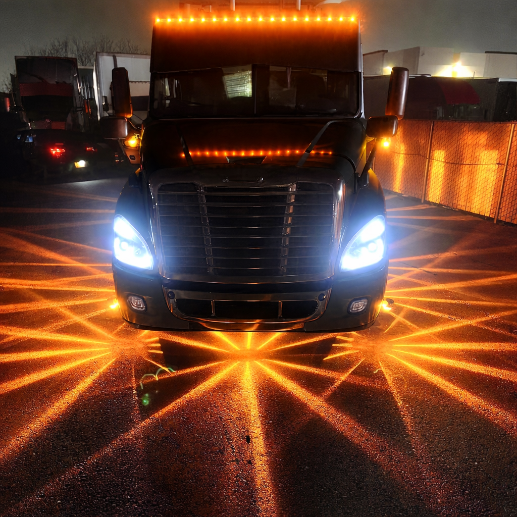 Creates a bright starburst lighting pattern on the ground, enhancing visibility and giving a premium look at night.