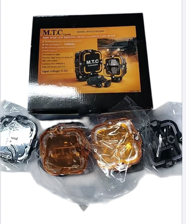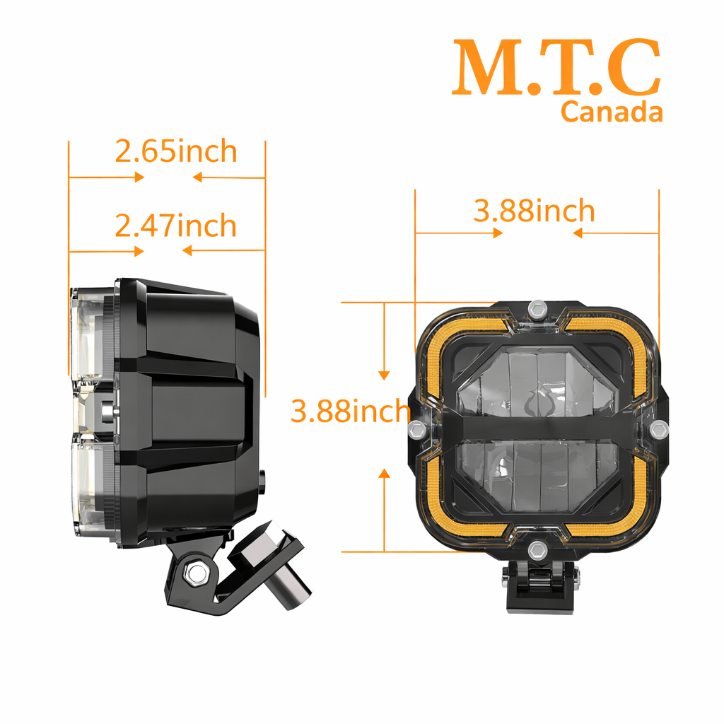M0854 – M.T.C Canada 4" 90W LED Driving Light with DRL, High/Low Beam, IP68 Waterproof (12000LM, Amber DRL)