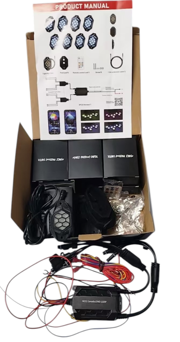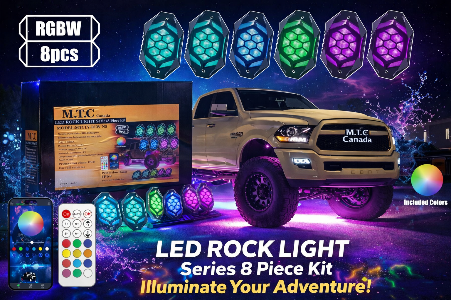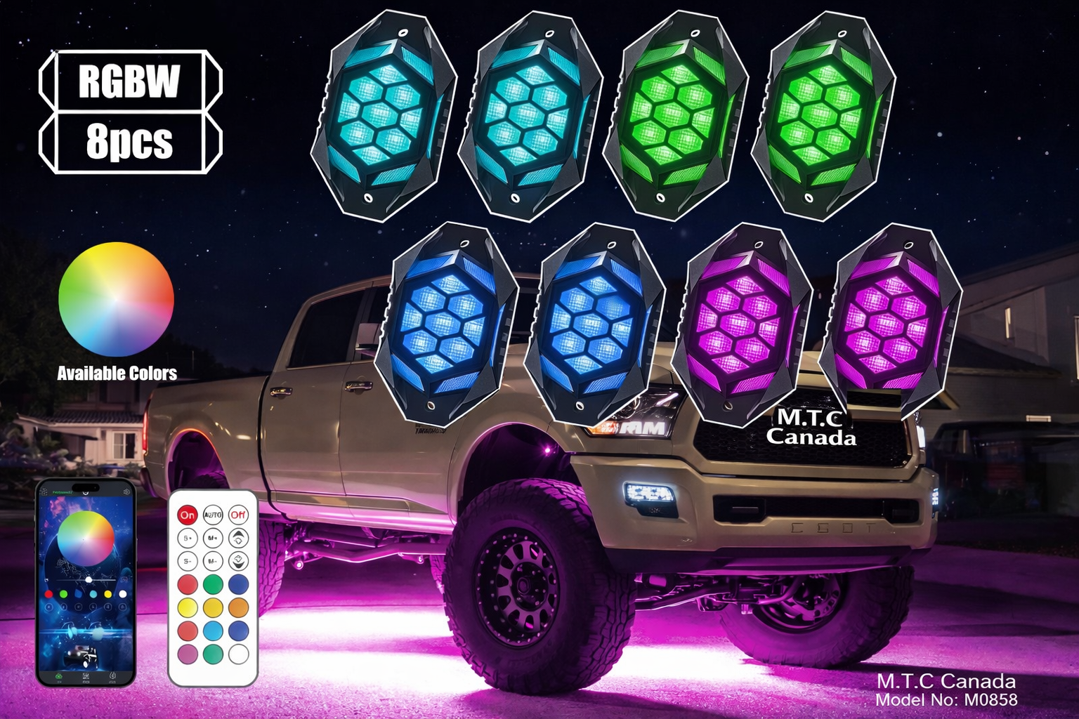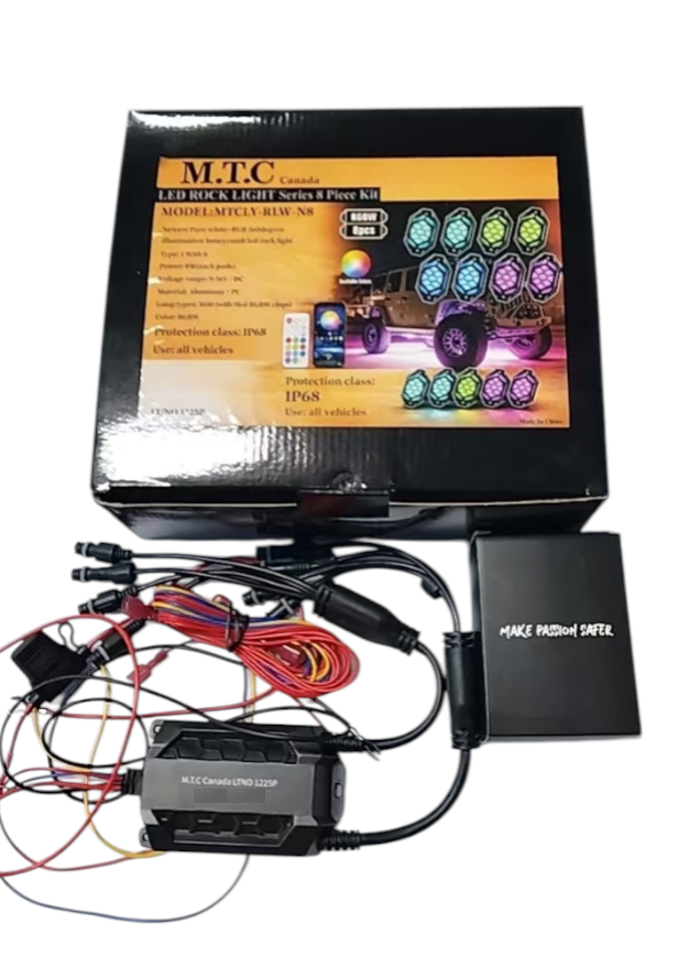M0858-M.T.C Canada LED Rock Light Kit (8PCS RGBW + Signal Function) ( Turn Amber + RED Brake Light