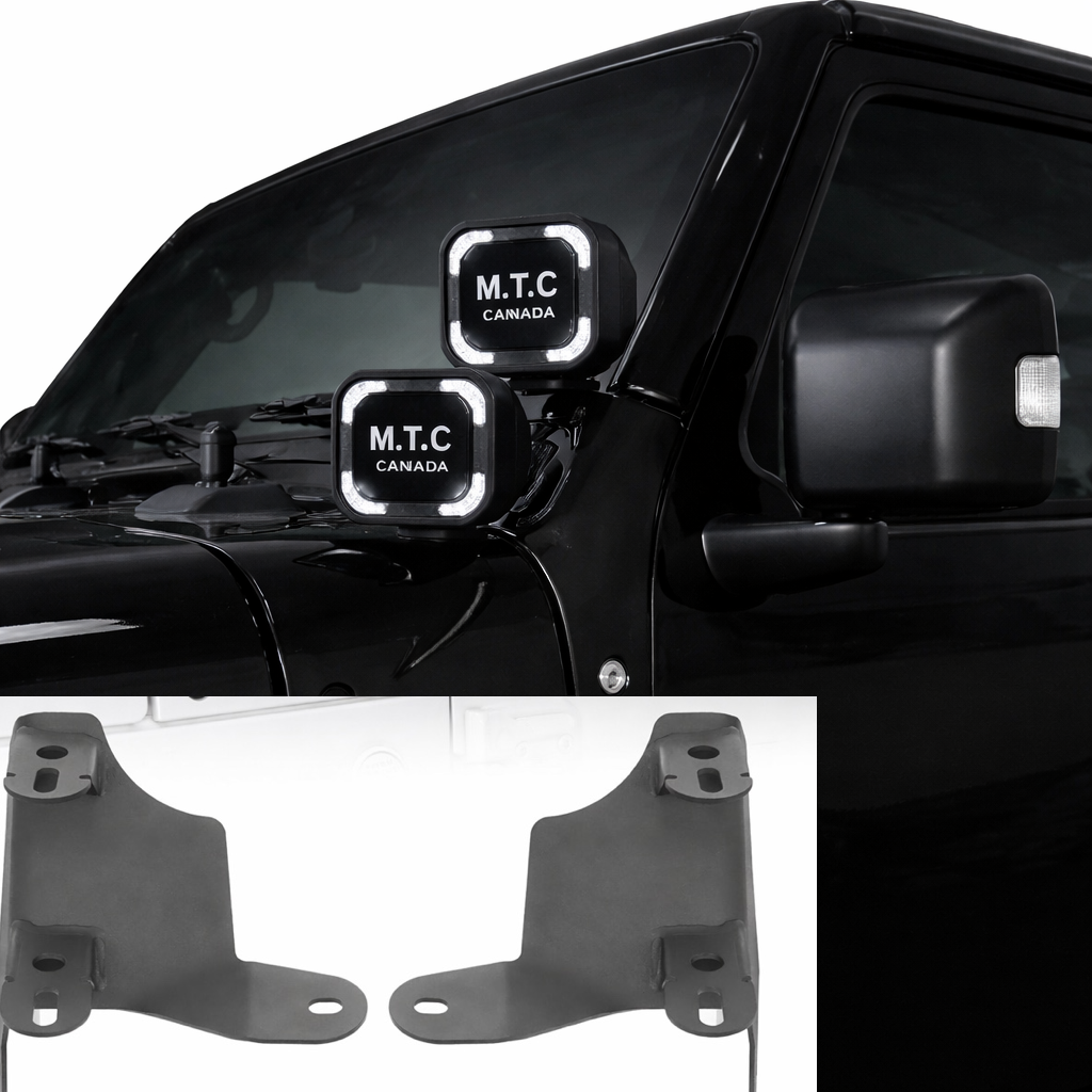 M0859: M.T.C Canada Dual A-Pillar Light Mounting Brackets for 2018-2026 Jeep JL Wrangler & Gladiator JT – Pair (Excludes Gladiator Mojave)