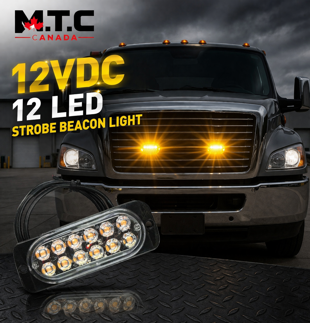 M0852 -M.T.C Canada 12VDC 12 LED Strobe Beacon Light – Amber Warning Light for Commercial Vehicles, Waterproof Surface Mount