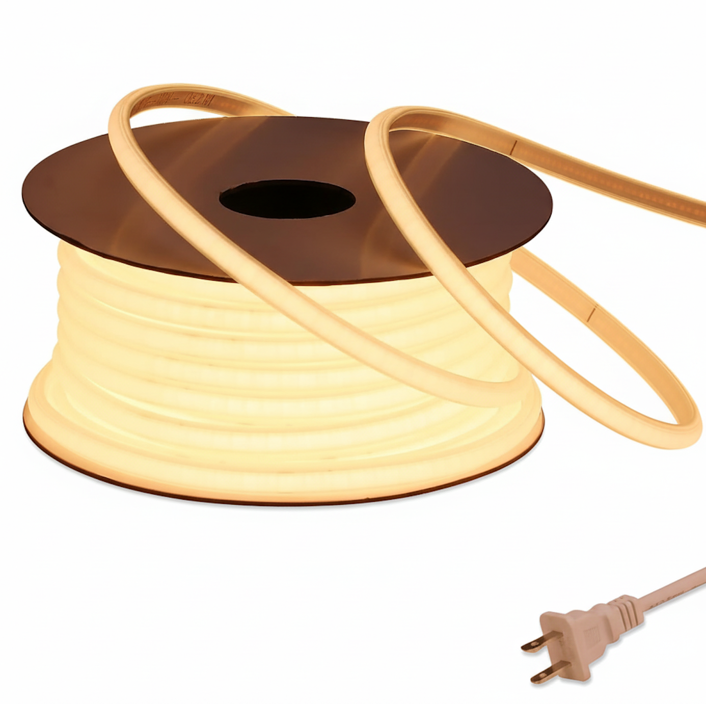 M0828 /6K :M.T.C Canada LED Cob Line Voltage Strip Light 50M (165 Feet ) Roll 480LED/M 10 Watt /m Direct Line Voltage 120VAC USA Wall Plug Outdoor And Indoor Ip67 Waterproof