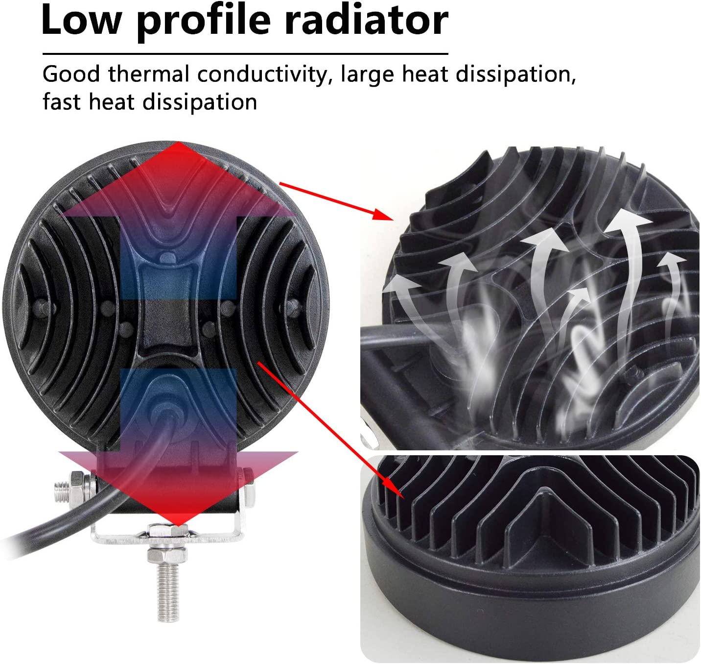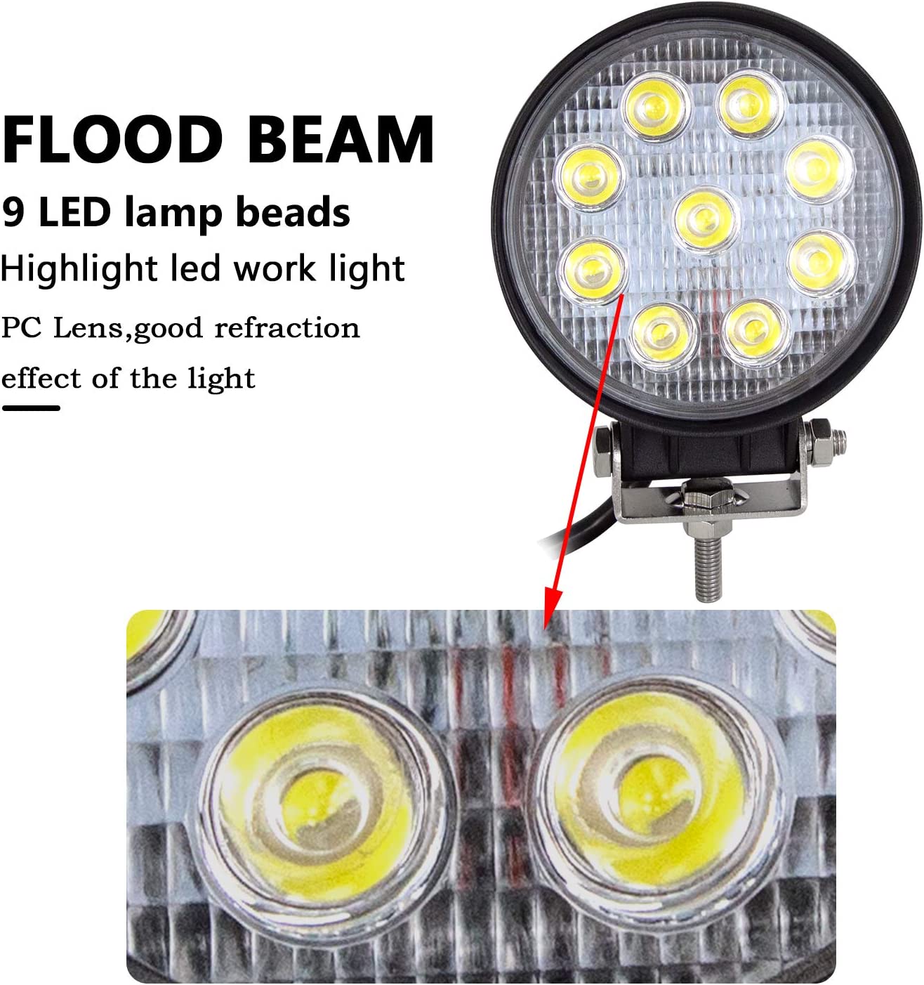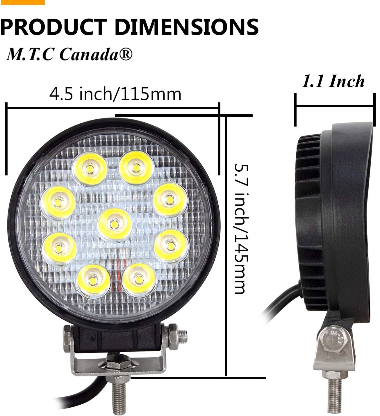 M0160 - M.T.C Canada LED 4 inch Round LED Light Off Road Application Work Light 27W 2700lm Flood 6000K IP67 Waterproof Input 10-30VDC