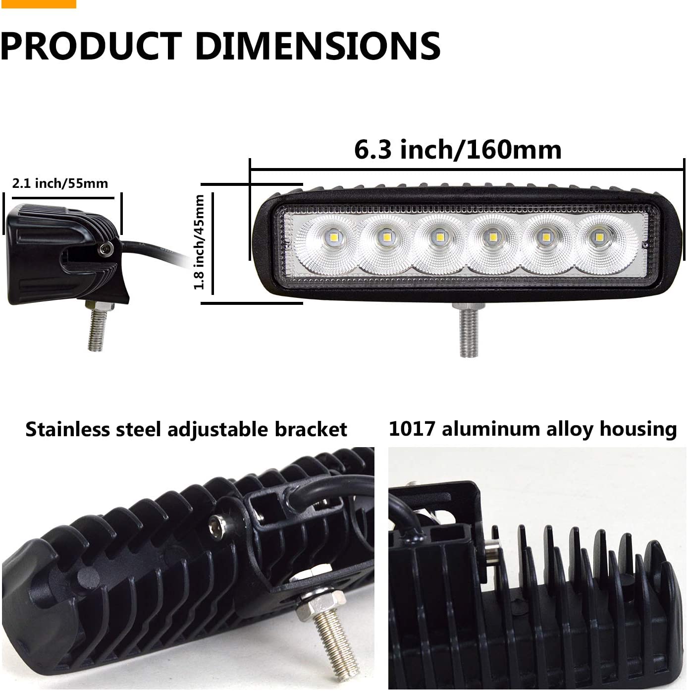 M0158 - 6 inch Slim LED Bar 18W 6000K Waterproof CE,ROHS Input Voltage Indoor /Outdoor Application Input 10-30V DC