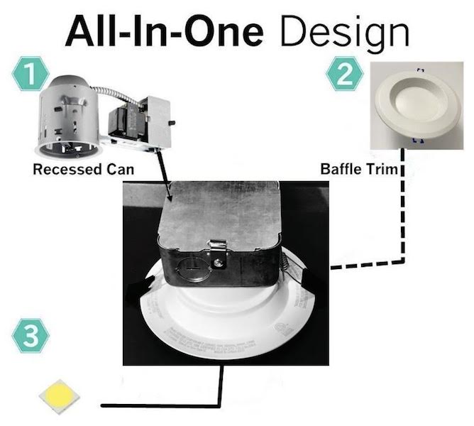 LED Downlight Recessed Retrofit Lighting Kit with Integral Junction Box, at the Back, CETL Certified,6000K(Cool White) ,Dimmable,IC Rated, Easy to Install, 5,6 inch