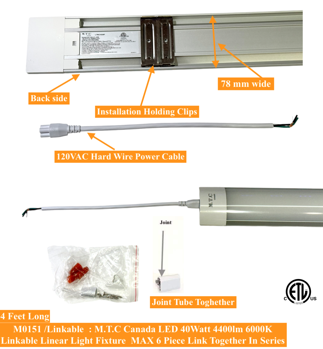 Package Comes With 2 Piece Surface Mount Clips and 1 J BOX Cover Plate If Needed Can be Use And 1 Small Joint To Link 2 Fixture Together , And 1 Piece 120VAC Hard Wire Connection