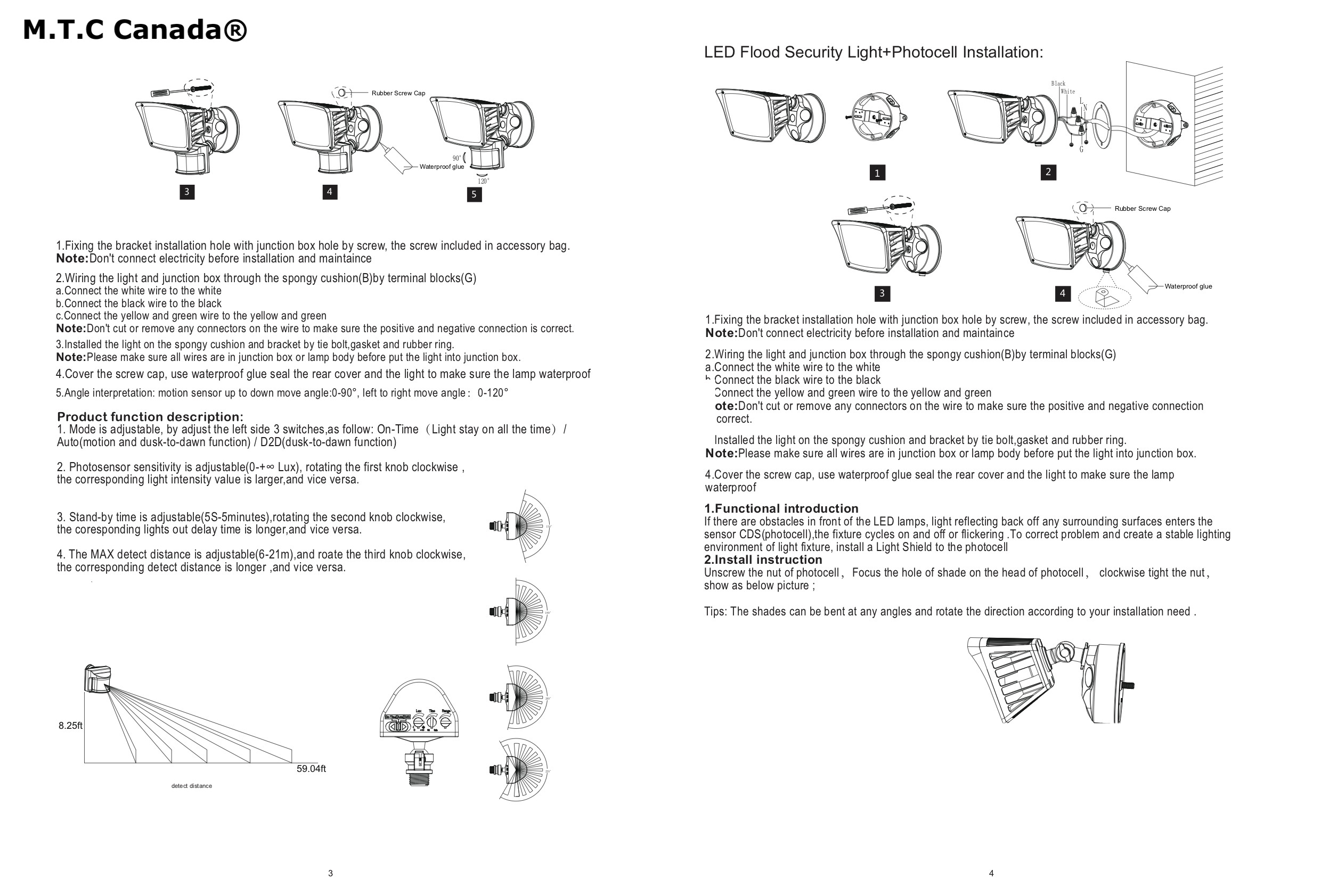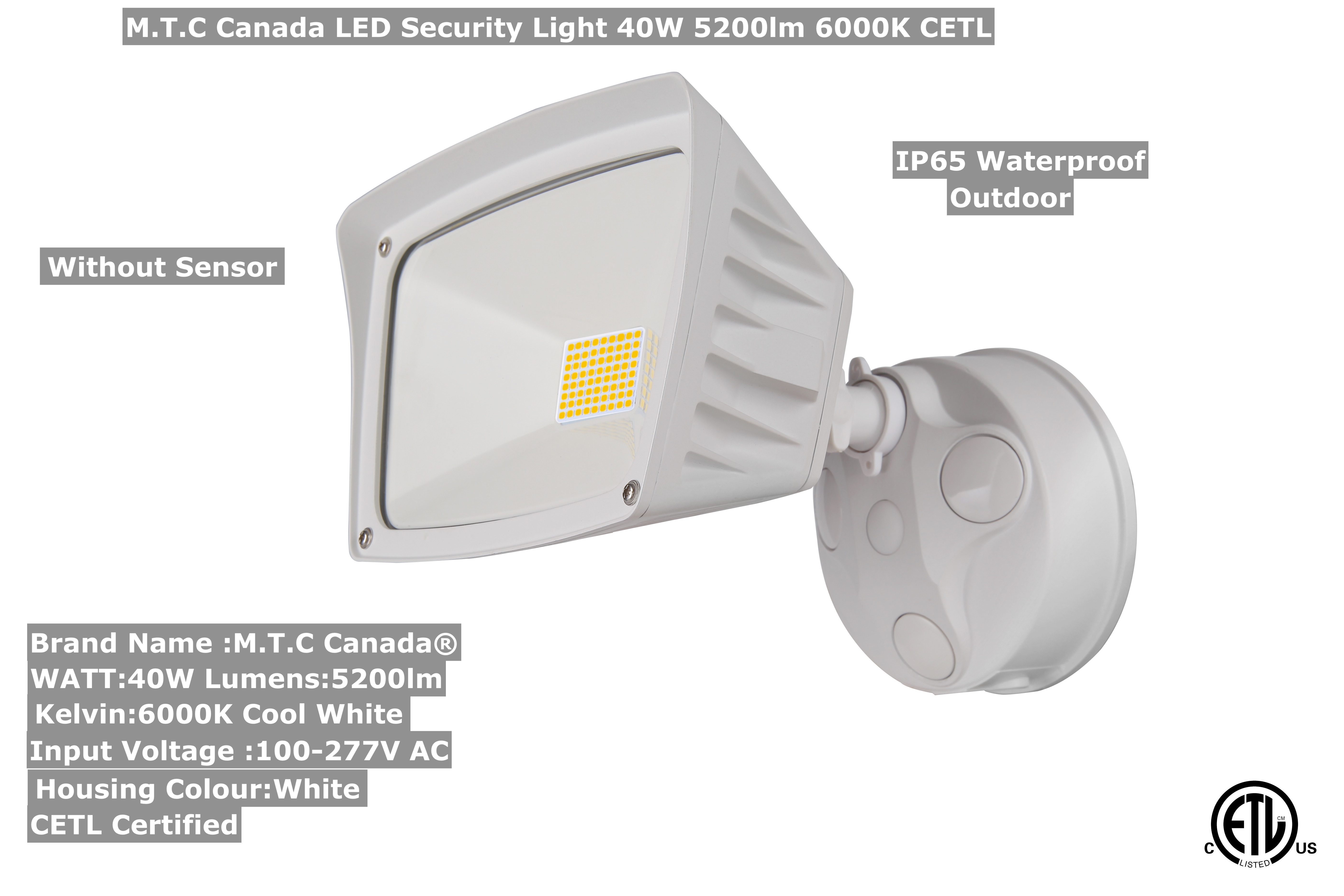 M0464/W :M.T.C Canada LED Flood light 40W 6000K 5200lm Input Voltage 100-277V AC IP65 Waterproof CETL Certified White Housing