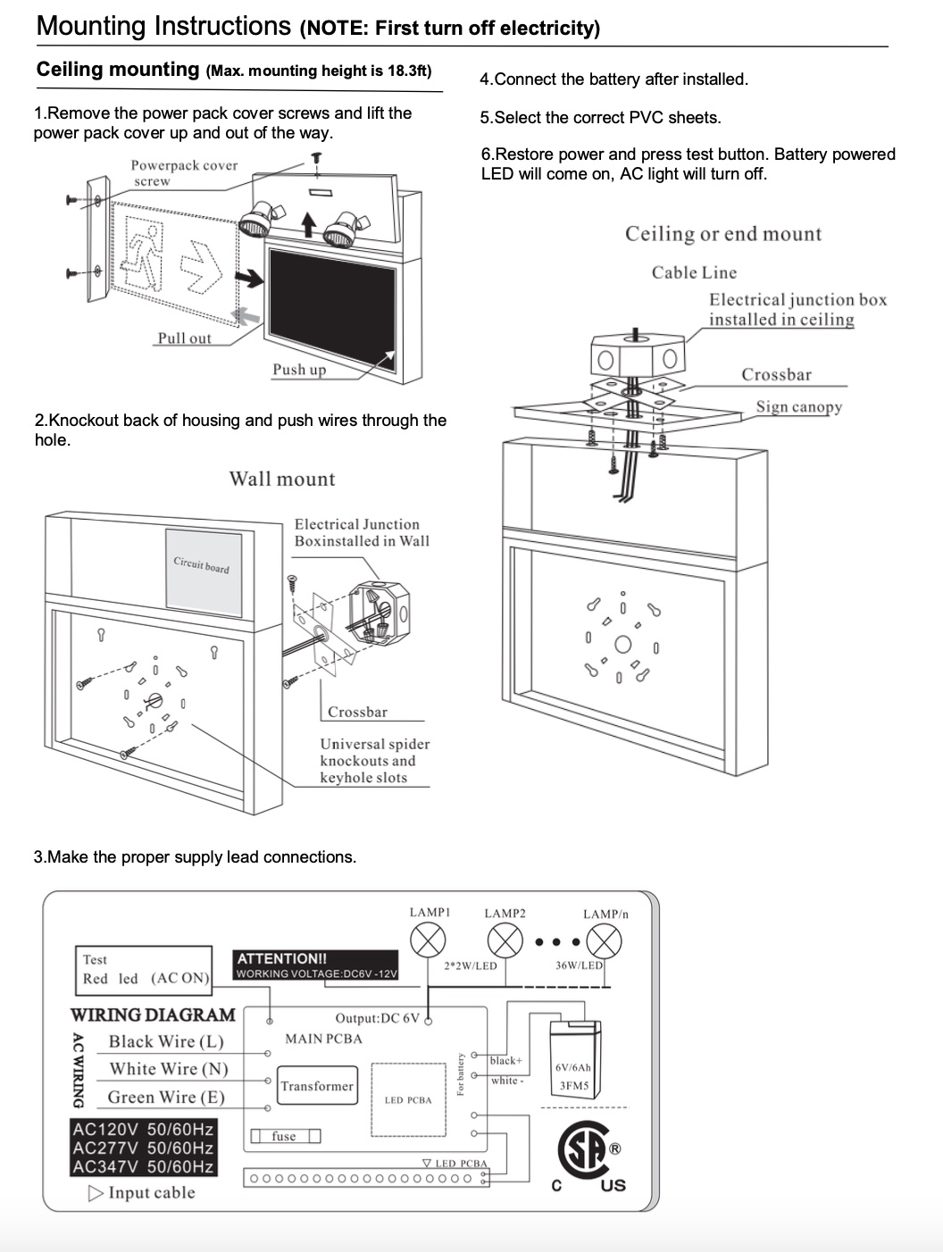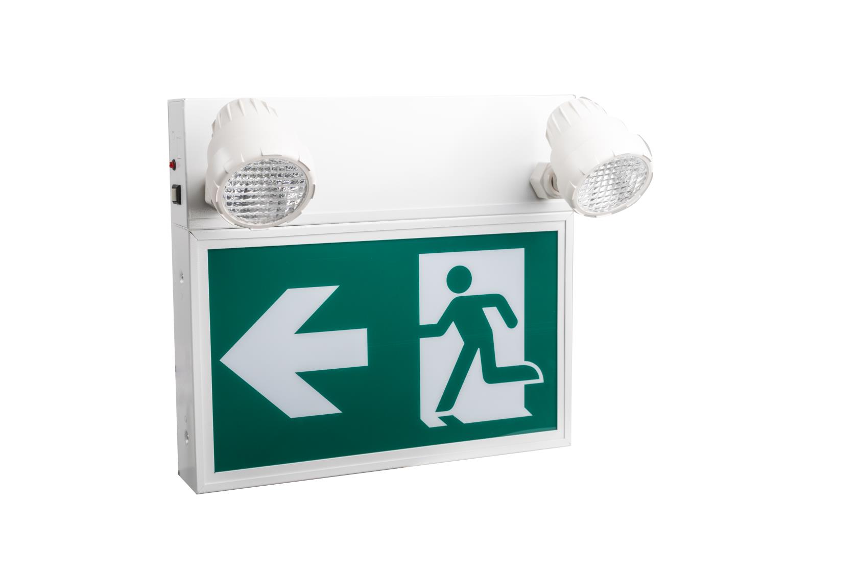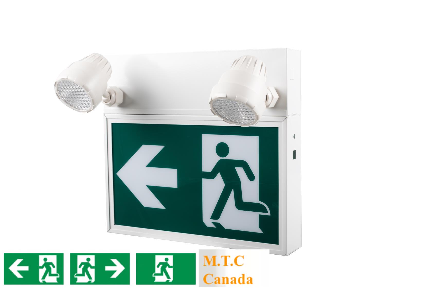 M0665: M.T.C Canada LED STEEL RUNNING MAN EXIT SIGN, Steel Housing Combo Emergency Light Running Man Exit Sign COMBO CSA Certified With 2 Head LED 2Wx2 Input Voltage 120-347V Include 3 Type Running Man Faceplate