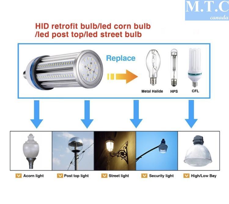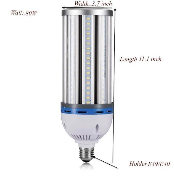 M0223 LED Corn Light Bulb,80W E39/E40 6000K Cool White,Input Voltage- 110V-265V, with Transparent Cover ,Street Light Replace HID/HPS/Metal Halide Bulb for Street Lamp Post Lighting Garage/Factory/Warehouse/High Bay/Porch/Backyard ,CE,ROHS