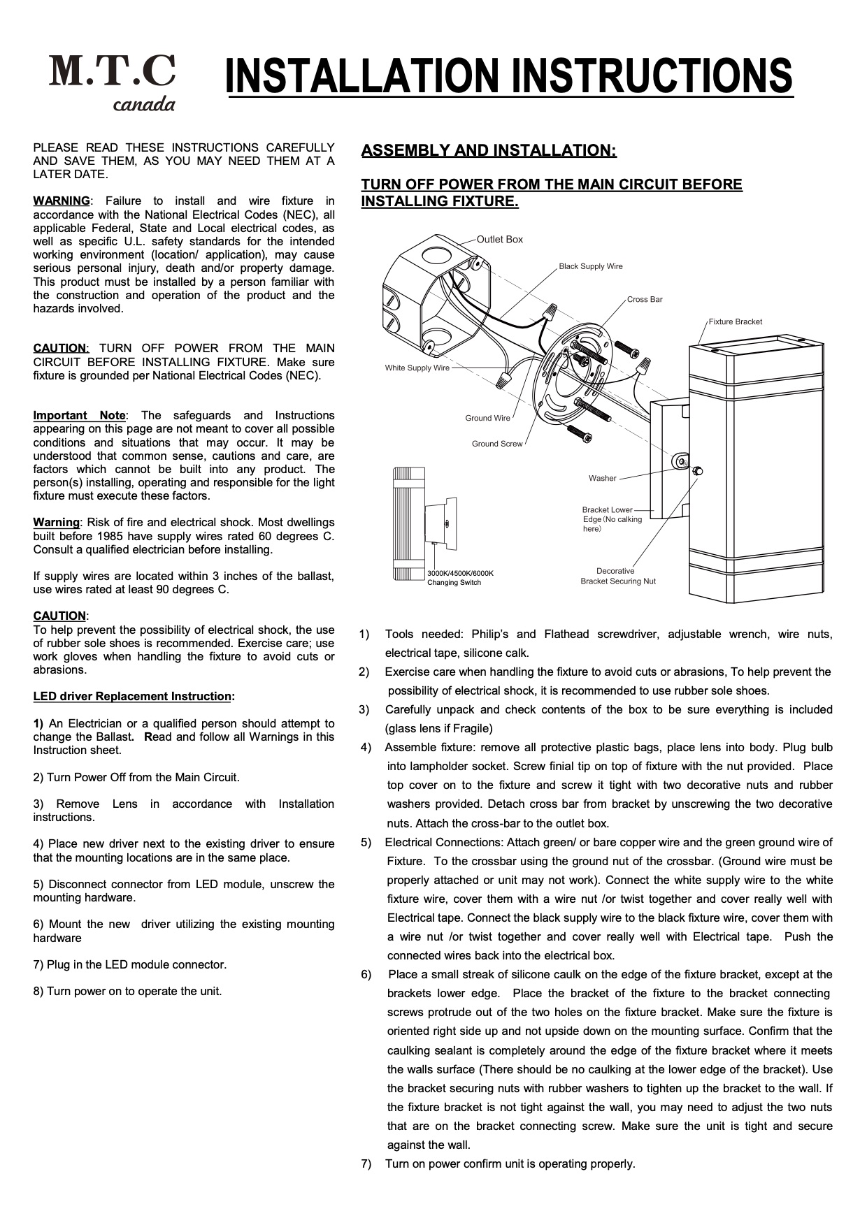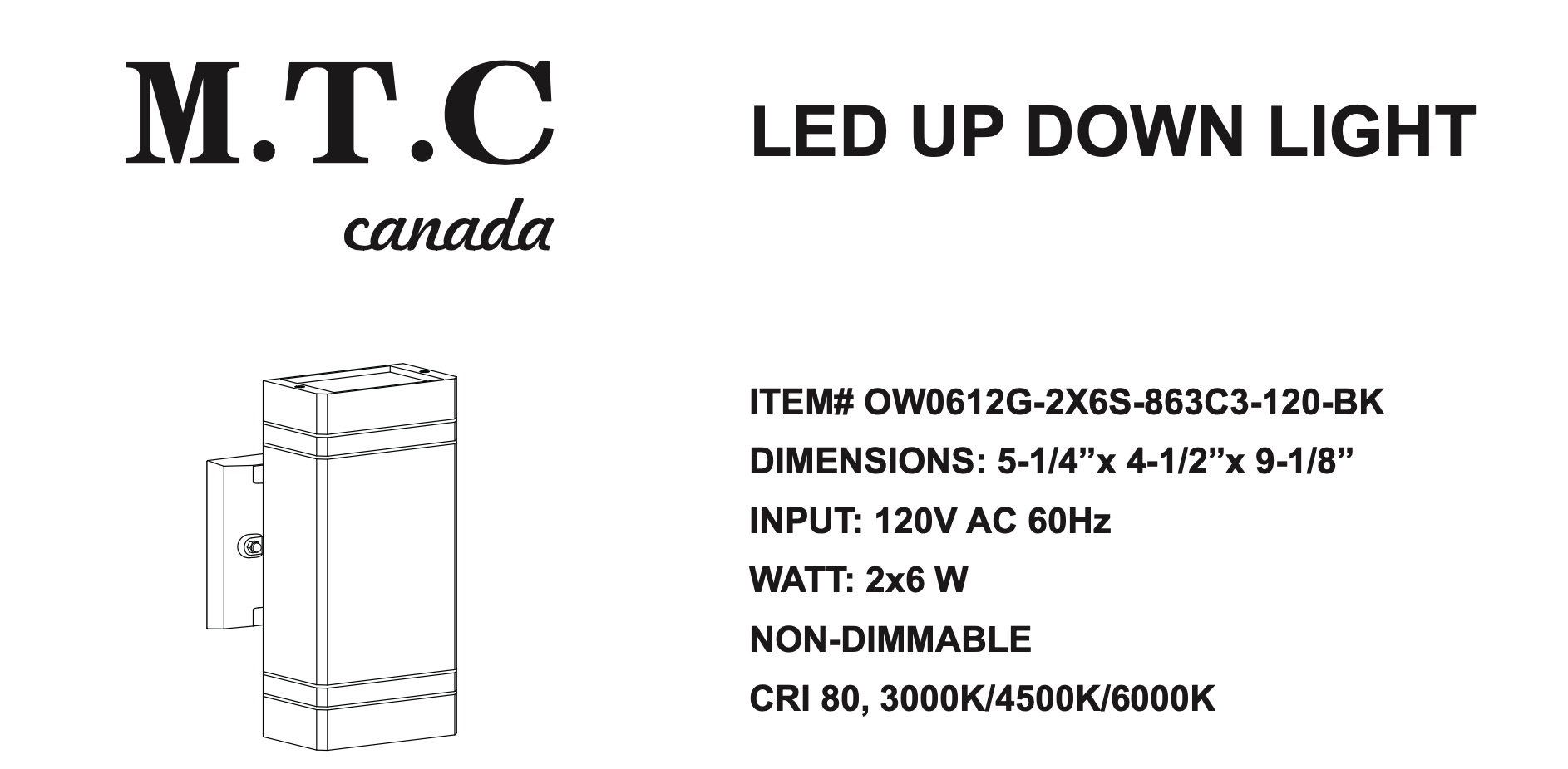 M0313 M.T.C Canada LED Wall Light Up Down watt 12W 3CCT Can Be Change With Button At Bottom 3000K/4500K/6000K Change Colour According To Your Choice Lumens 1500lm CETL Certified