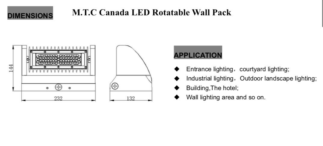 M0316 M.T.C Canada Rotatable LED WALL Pack 40W RGB With Remote 5200 lm Input Voltage 100-277V Black Housing