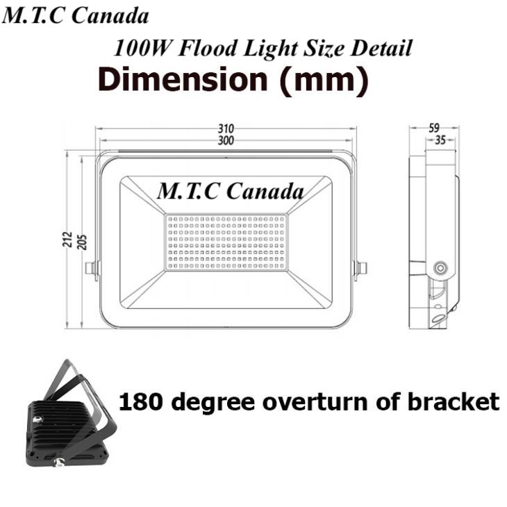 M0326: M.T.C Canada 100W Slim Flood Light 12000lm 6000K Input Voltage AC120V CUL Certified