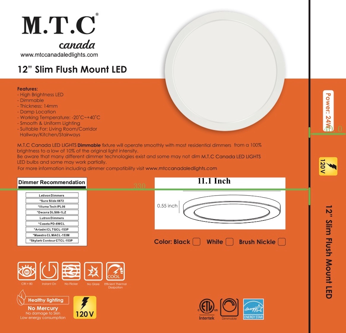 M0350:M.T.C Canada LED Slim Panel Surface Mount / LED Ceiling Light 12 inch Round 24W 3000lm 3000K,4000K ,6000K CETL Certified