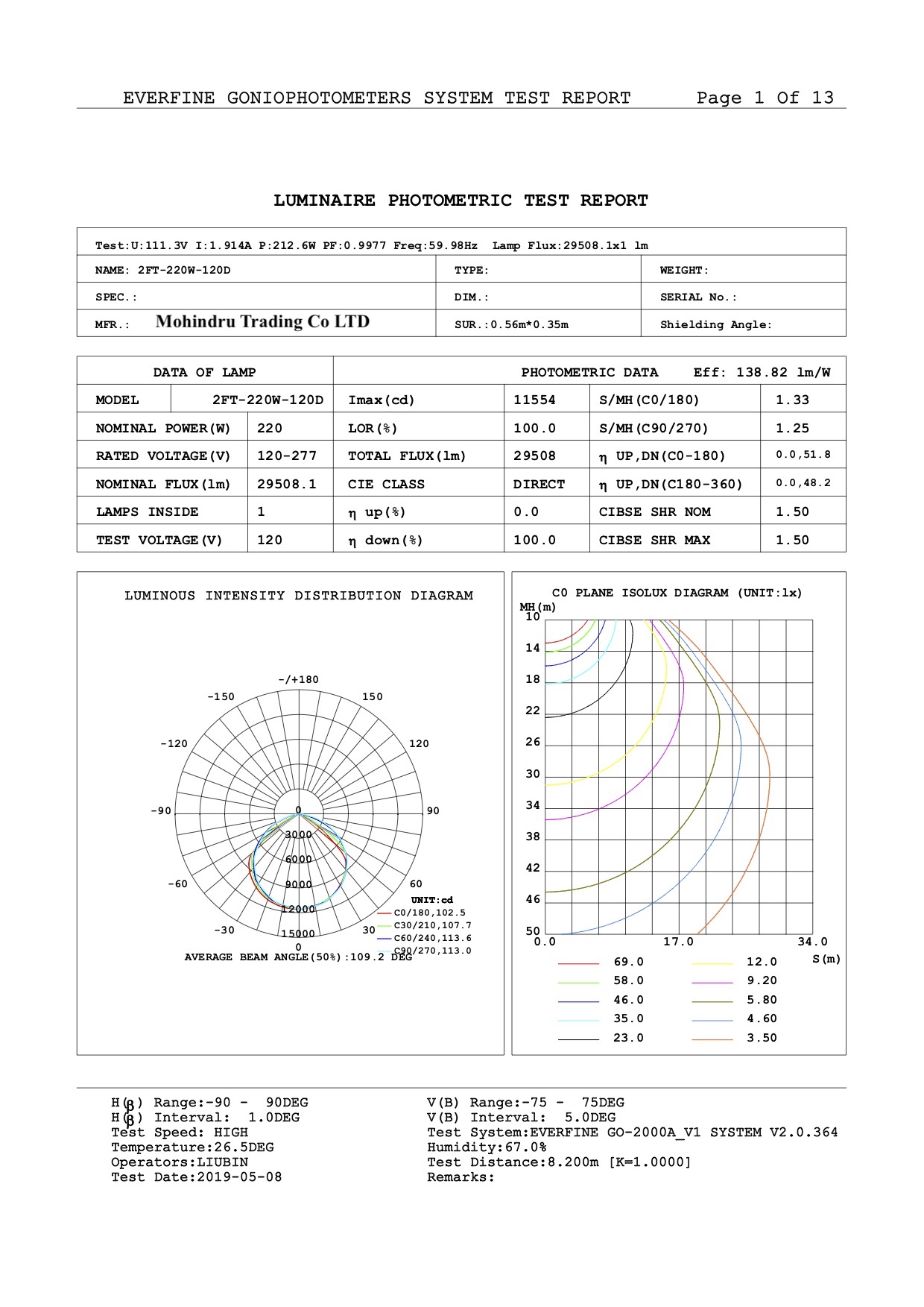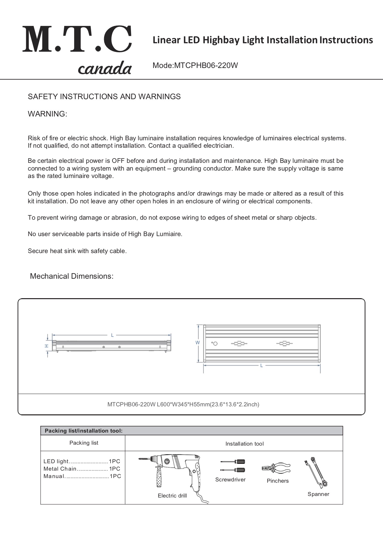 M0413 : M.T.C Canada LED Linear High Bay Light 220W 28600lm 3000K Warm White 0-10 V DIMMABLE CUL Certified