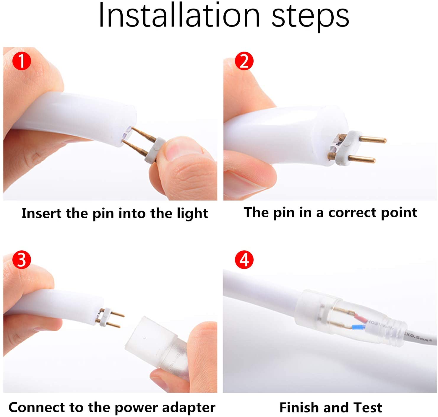 M0434: AC/DC Power Adaptor Kit For 360 Degree Neon Round Rope With 120VAC USA Wall plug Kit With Metal Pin and End Cap For Single Colour Only