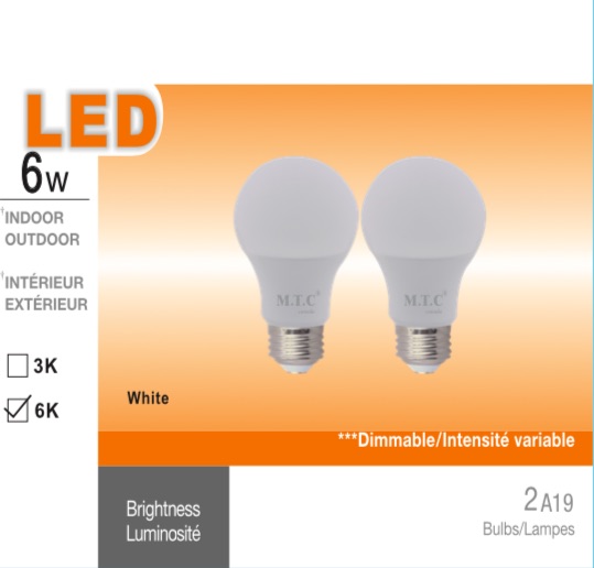 M0447:Led A19 Bulb 6W (6W=60W Halogen), 660 Lumens , 6000K, Cool White, Dimmable Input Voltage- 120Vac , CUL Certified Dimmable
