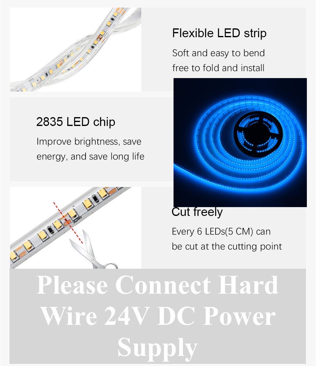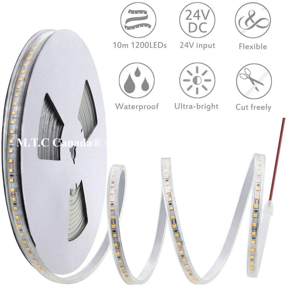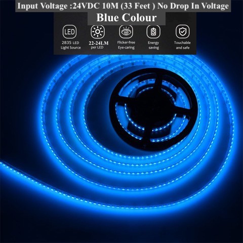 M0451 :LED Strip Lights Blue Colour IP44 Waterproof 33 ft 1200 LEDs 2835 SMD 24V DC Blue Colour Outdoor/Indoor LED Flexible Tape for Kitchen Bedroom Garden Under-Cabinet Backyard Hallways Stairs Decoration Lighting