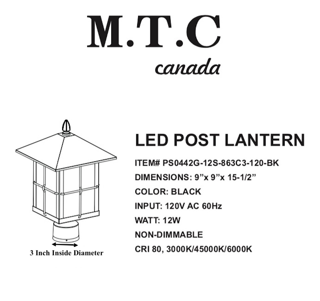 M0459 : M.T.C Canada LED Post Light WATT 12W 1500lm