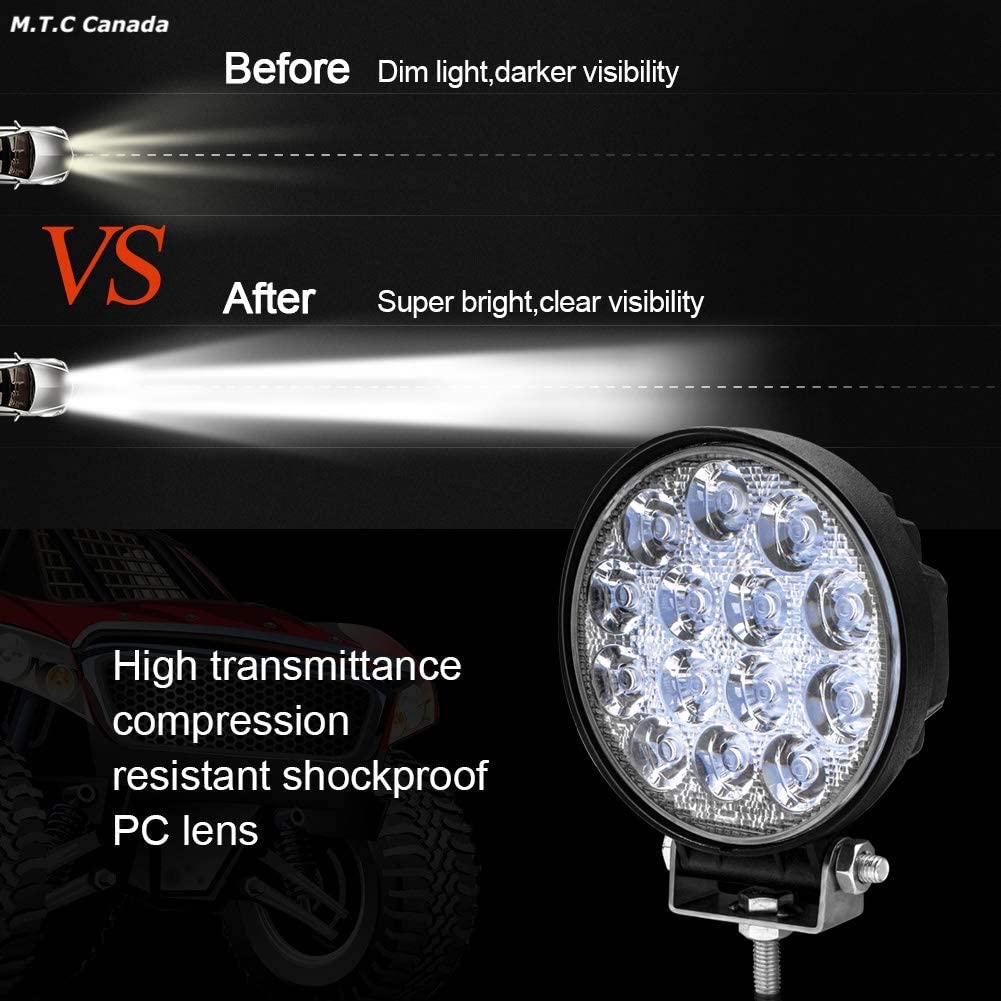 M0466 : M.T.C Canada® 4 inch 42W Round LED Work Light Bar Flood Beam 4200 Lumens 6000k for ATV Jeep Trailer Fishing Boat Tractor Truck