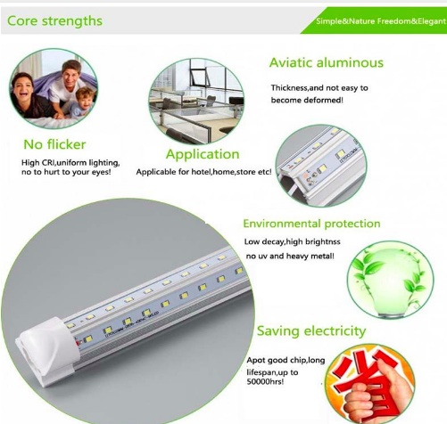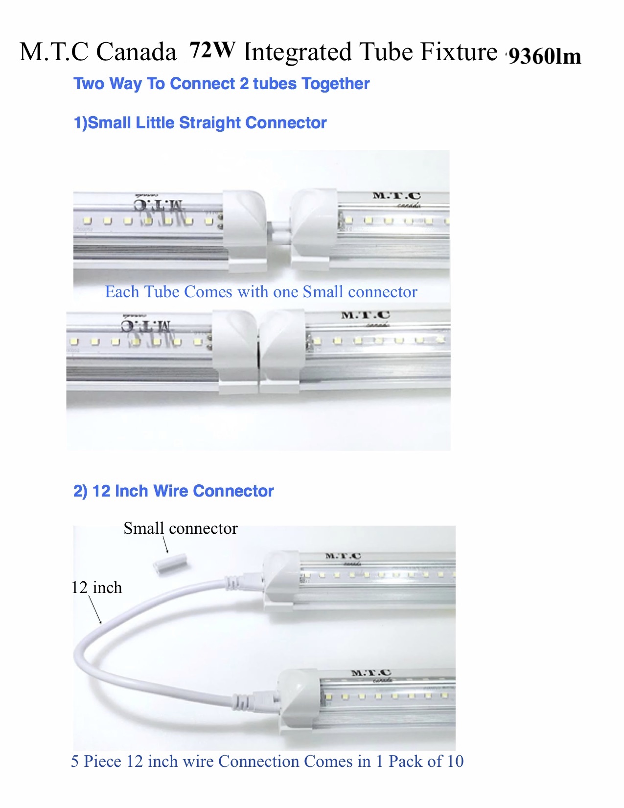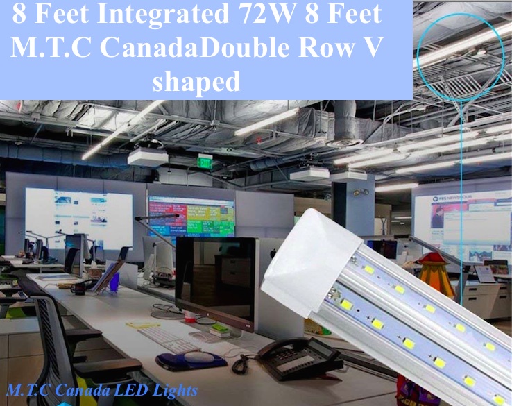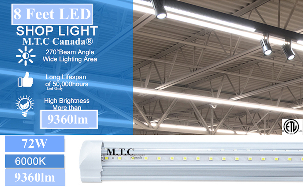 M.T.C Canada Premium Range LED T8 8 Feet Integrated Tube Light Fixture /Shop Light Fixture /Garage Light Fixture /Cooler Light /Fridge Light LED 72W 9360lm(130lm/W) 6000K Cool White CETL Certified ,Conforms to UL Std.1993 ,Certified to CSA Std.C22.2.No.1993 Double Row Can Be Link Together Upto 4 Piece