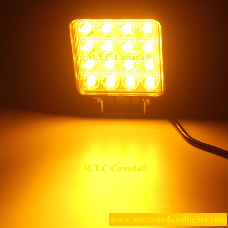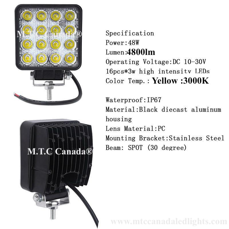 M0508:M.T.C Canada Amber Yellow Led Work Light 12V, 48W 24V,3000K 4800Lm Lights Square Led Driving Light Bar Spot Working Lamp Fog ATV 4X4 4WD SUV Off-Road Bulb for F150 SUV Tractor Truck