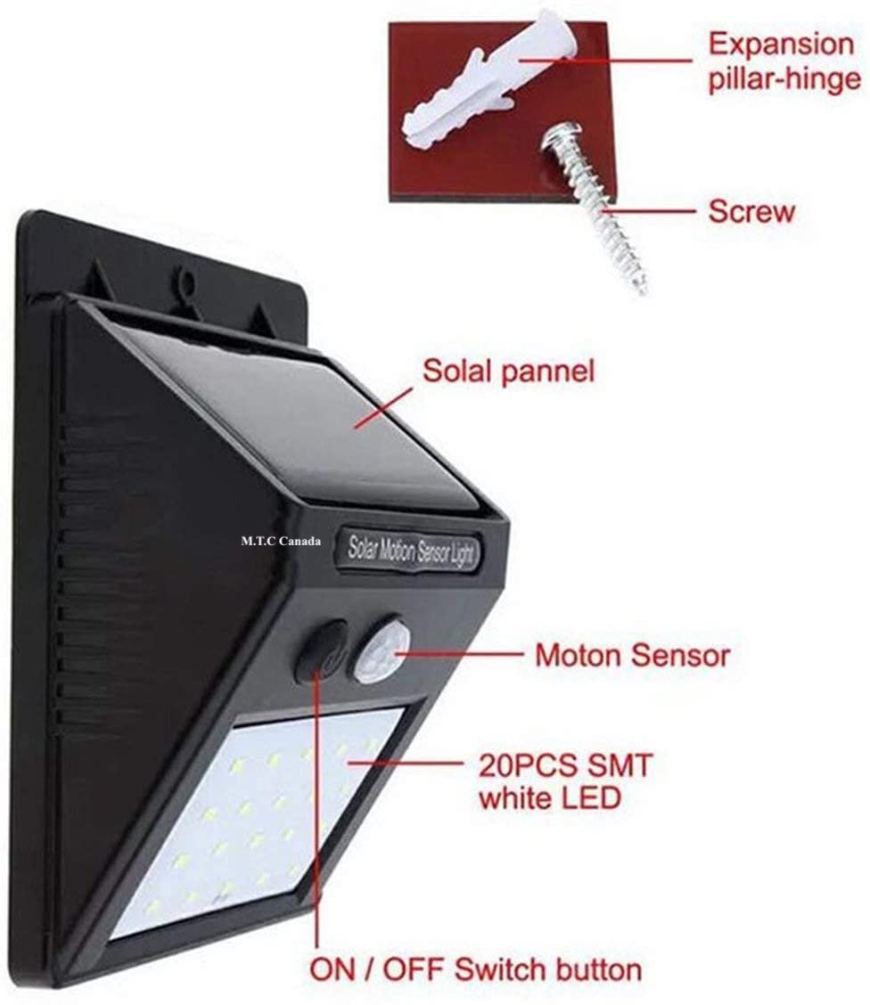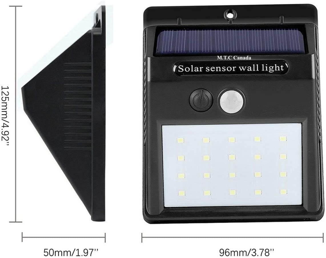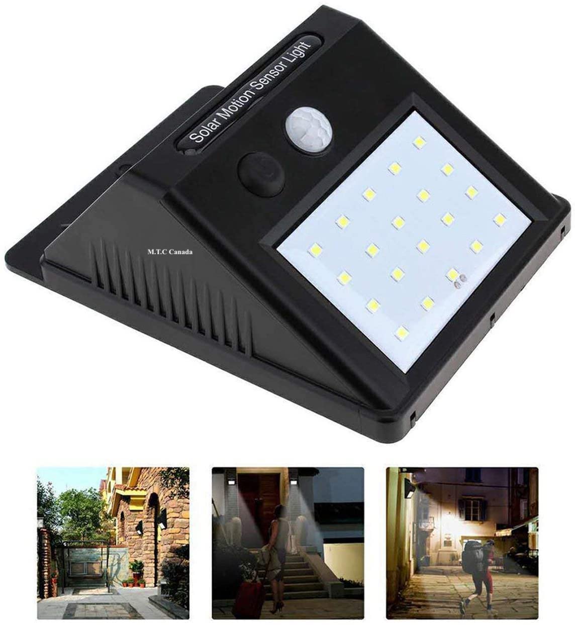 M0538 : 20 LED 320lm Outdoor LED Solar Motion Sensor Lights, Wireless Outdoor Wall Lights, Black Housing
