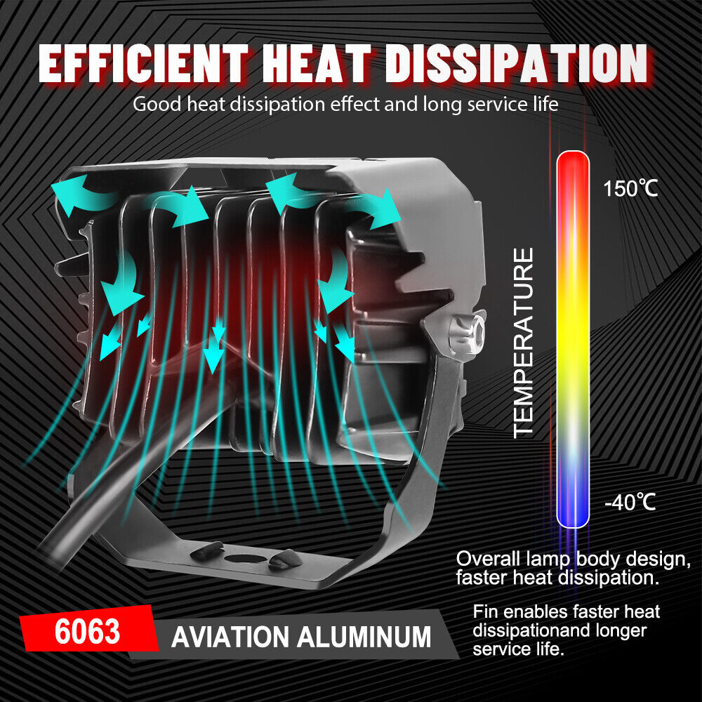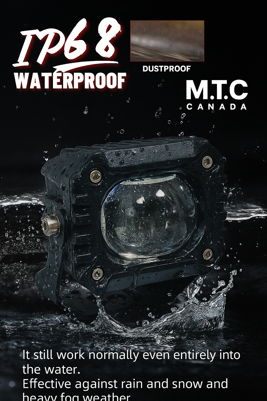 *Strengthened Construction, IP67 waterproof perfect sealed with Diecast Aluminum housing and shock-proof PC lens, well working in rainy, sandy, foggy days and other harsh environment.
