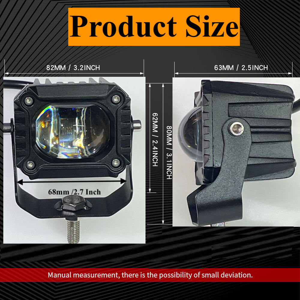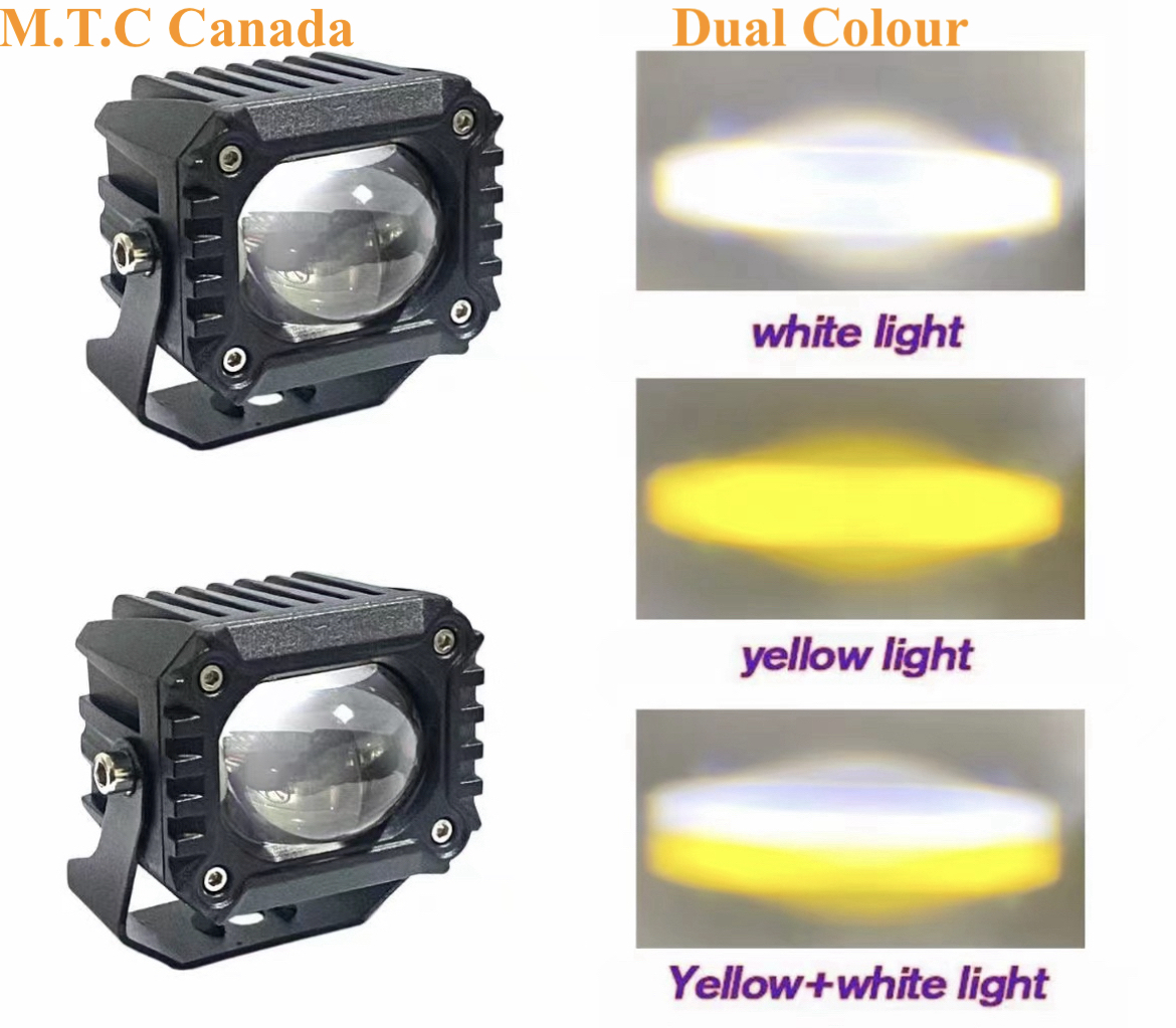 M0576 : M.T.C Canada LED 2.5 inch Square White Amber LED Driving Work Light Bar Pods With Mount Bracket Spot Off Road Fog