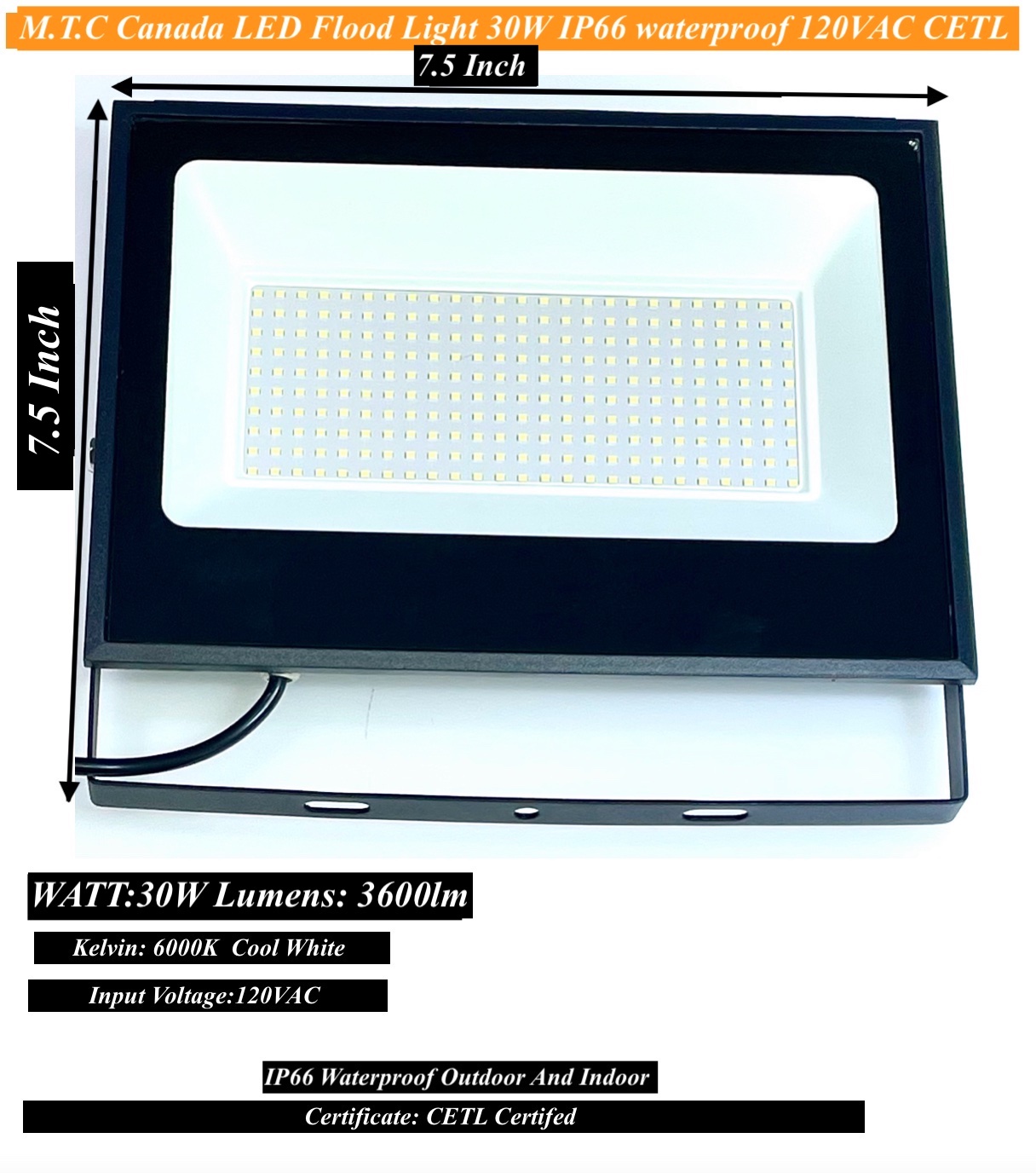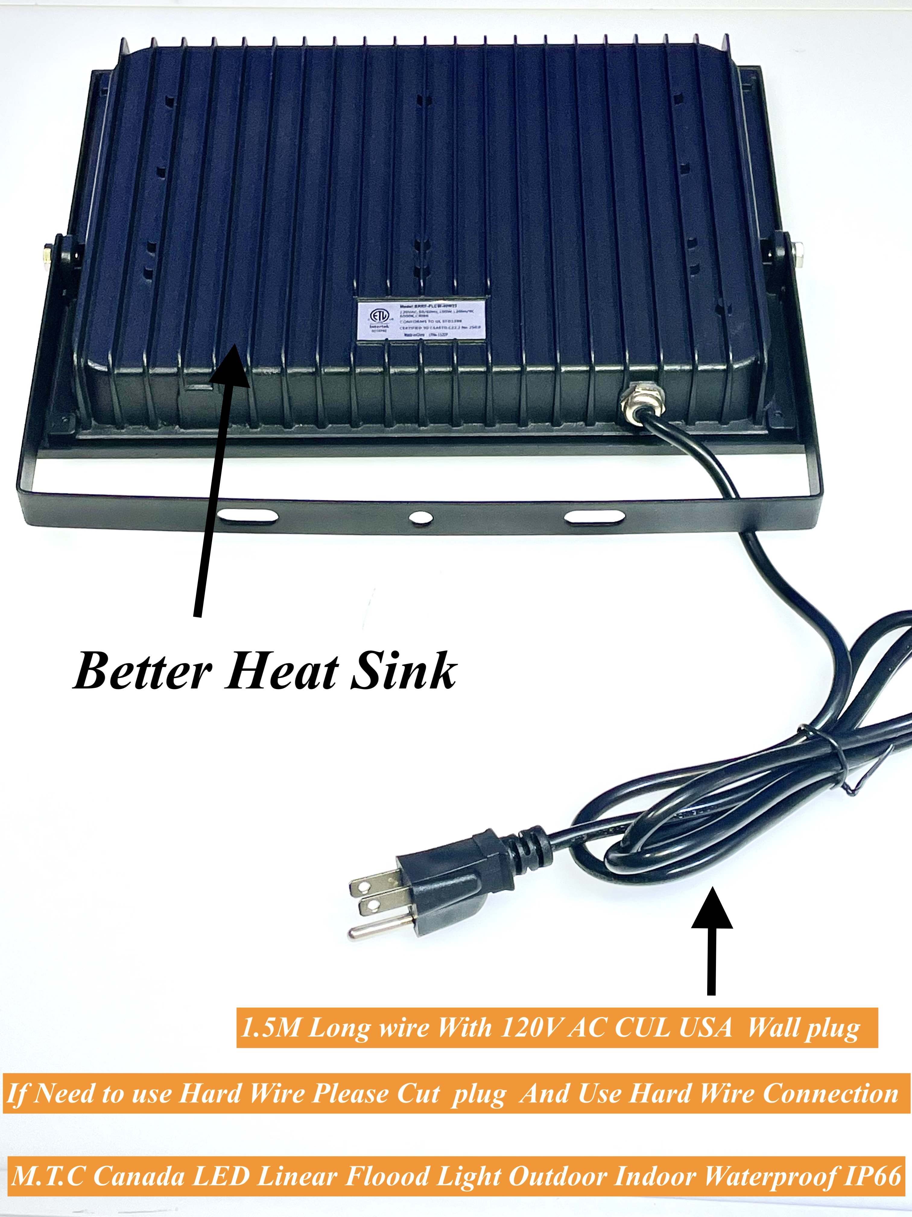 M0639:M.T.C Canada LED 30W Linear Slim Flood Light 3600lm 6000K Ip66 Input Voltage AC120V With 1.5M Wire and US wall plug CETL Certified