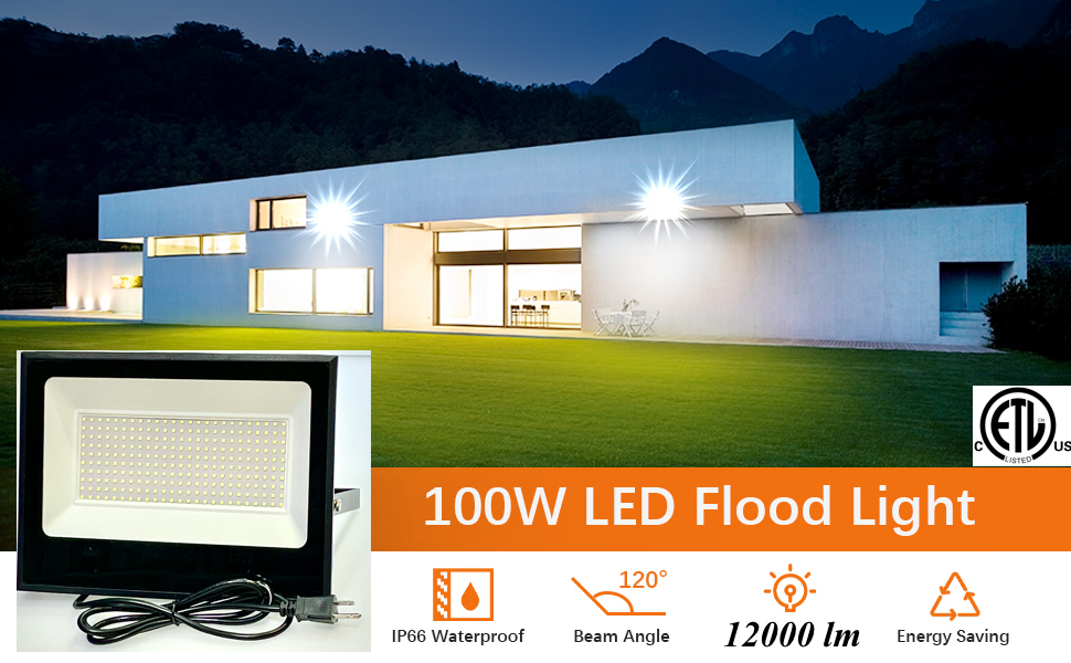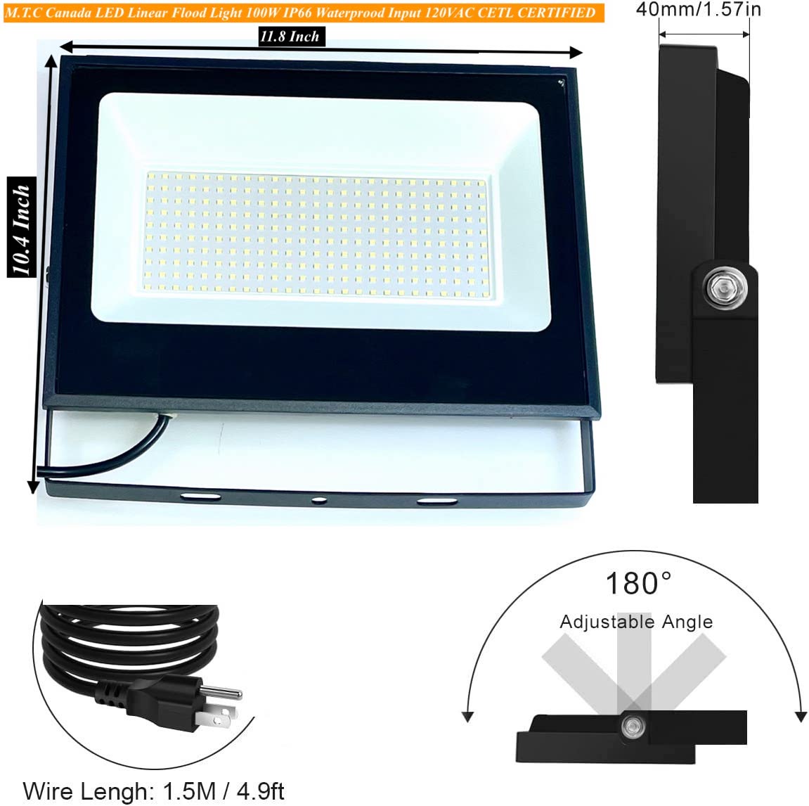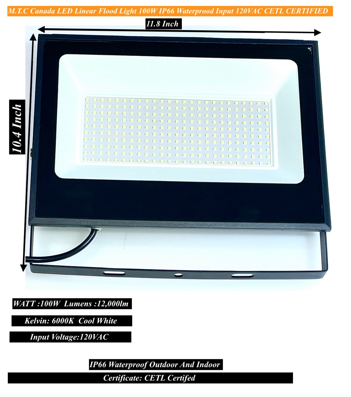 M0641: M.T.C Canada LED 100W Linear Slim Flood Light 12000lm 6000K Ip66 Input Voltage AC120V With 1.5M Wire and US wall plug CETL Certified
