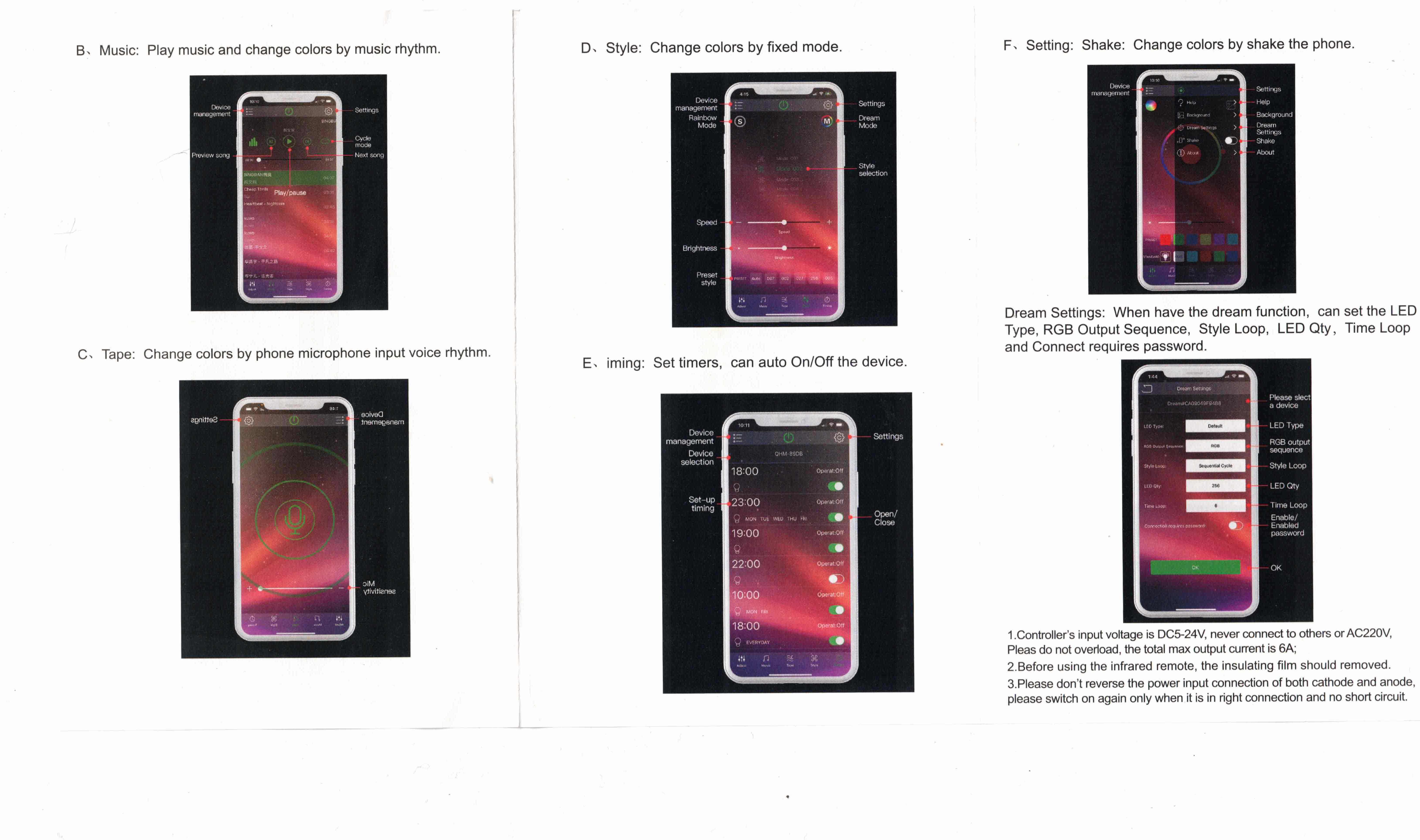 M0647 : M.T.C Canada LED strip RGB Running Light Controller With Remote and Bluetooth APP Control Input DC 5-24V