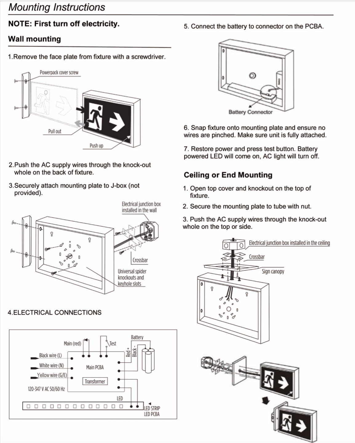 M0666: M.T.C Canada LED Running Man Exit Sign Steel Housing PC Panel Input Voltage 120V-347V CSA Certified