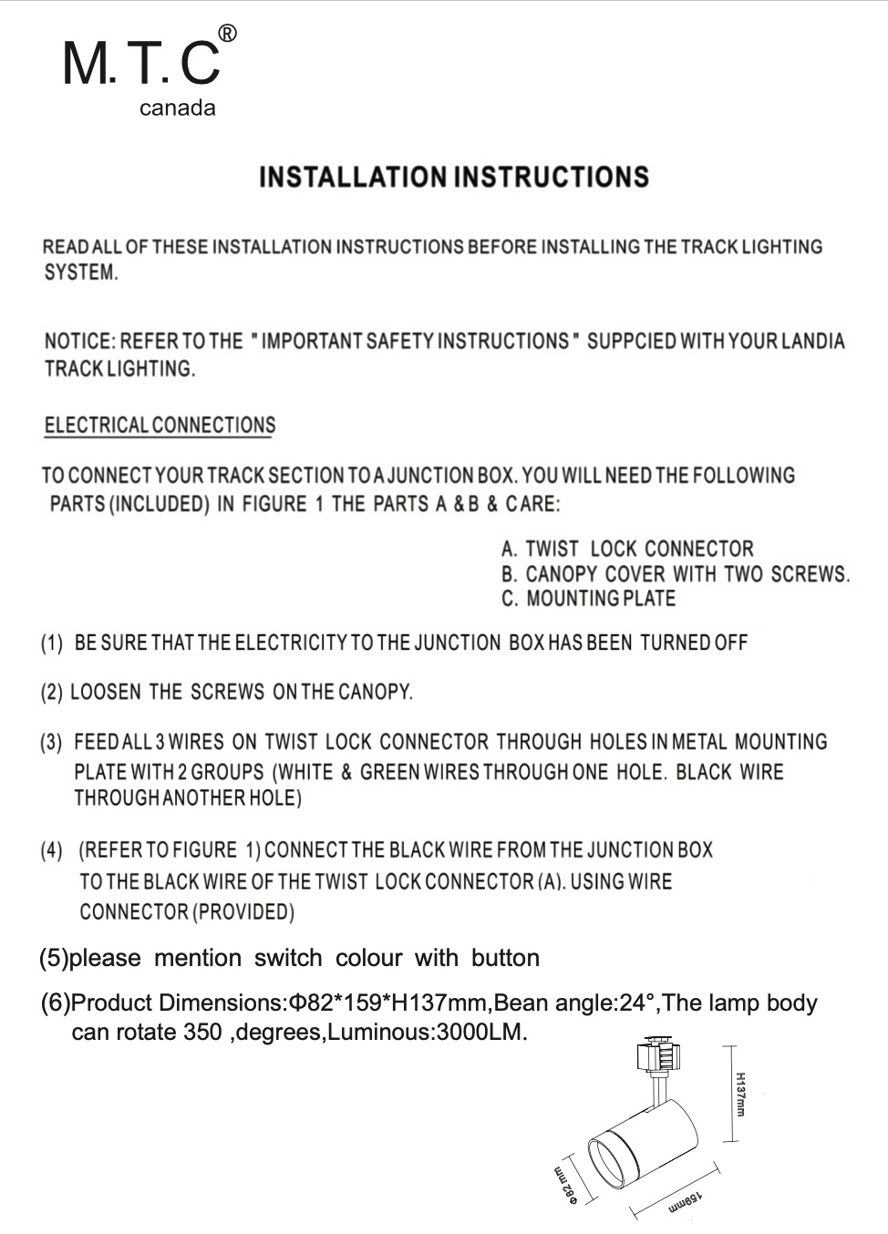 M0683 /W : M.T.C Canada LED Track light