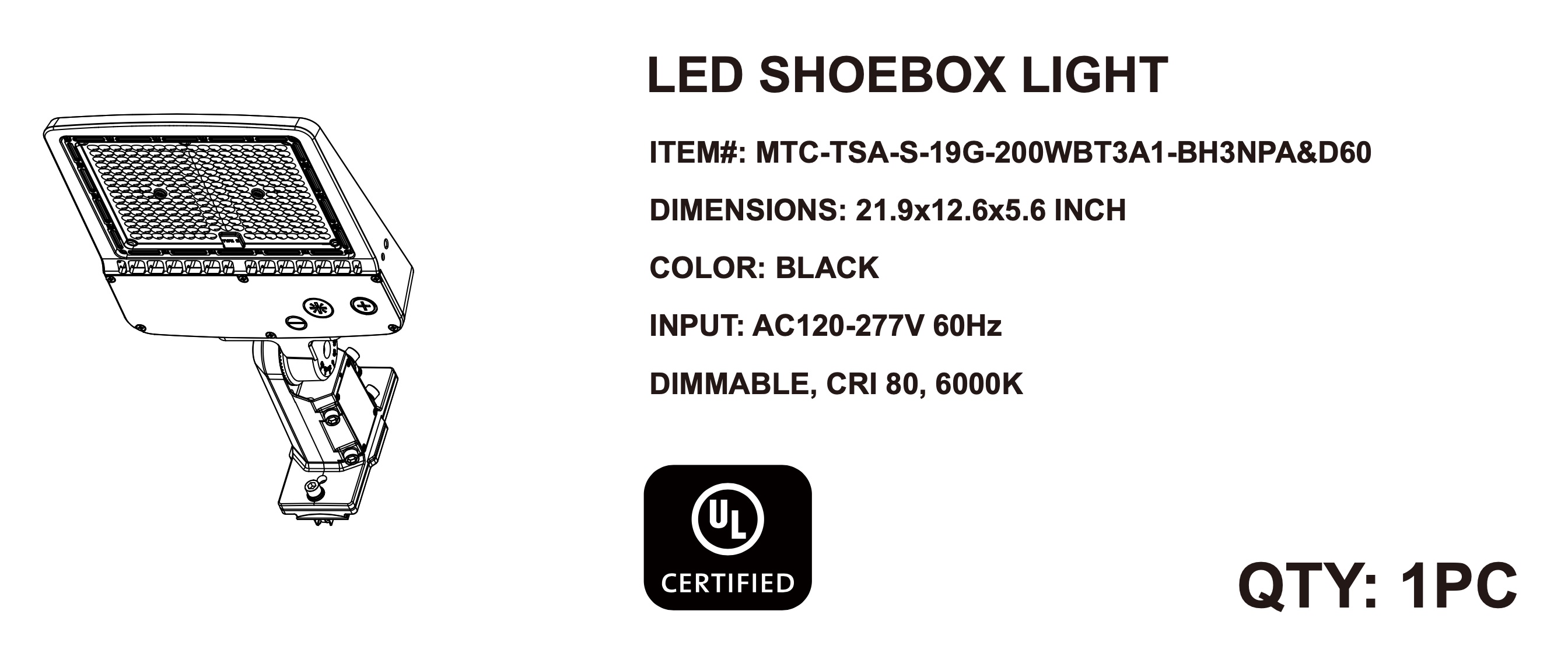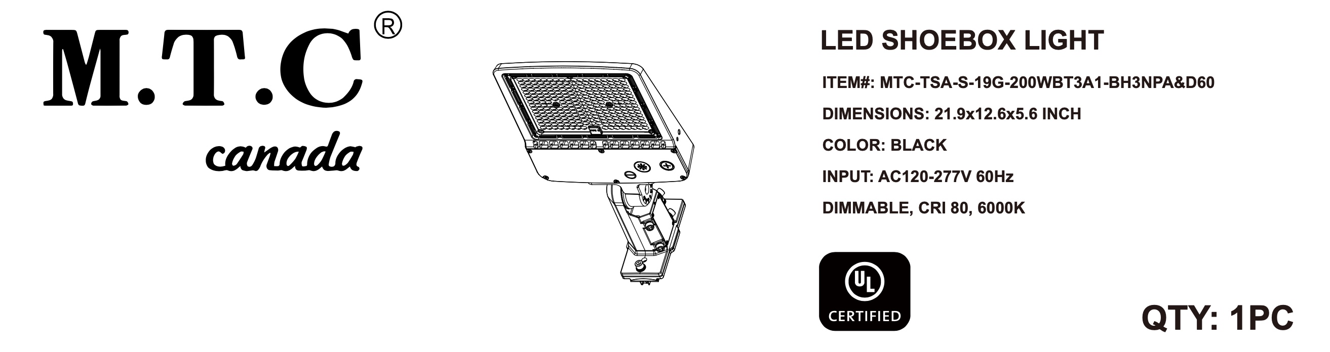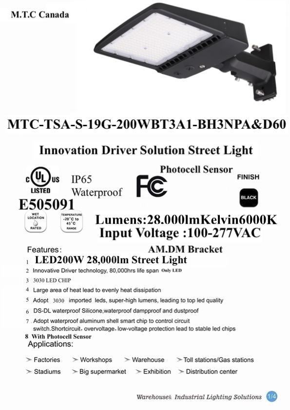 - M.T.C Canada LED Street Light /Shoebox 200W 6000K Day Light white ( Cool White ) , lumen 28000lm