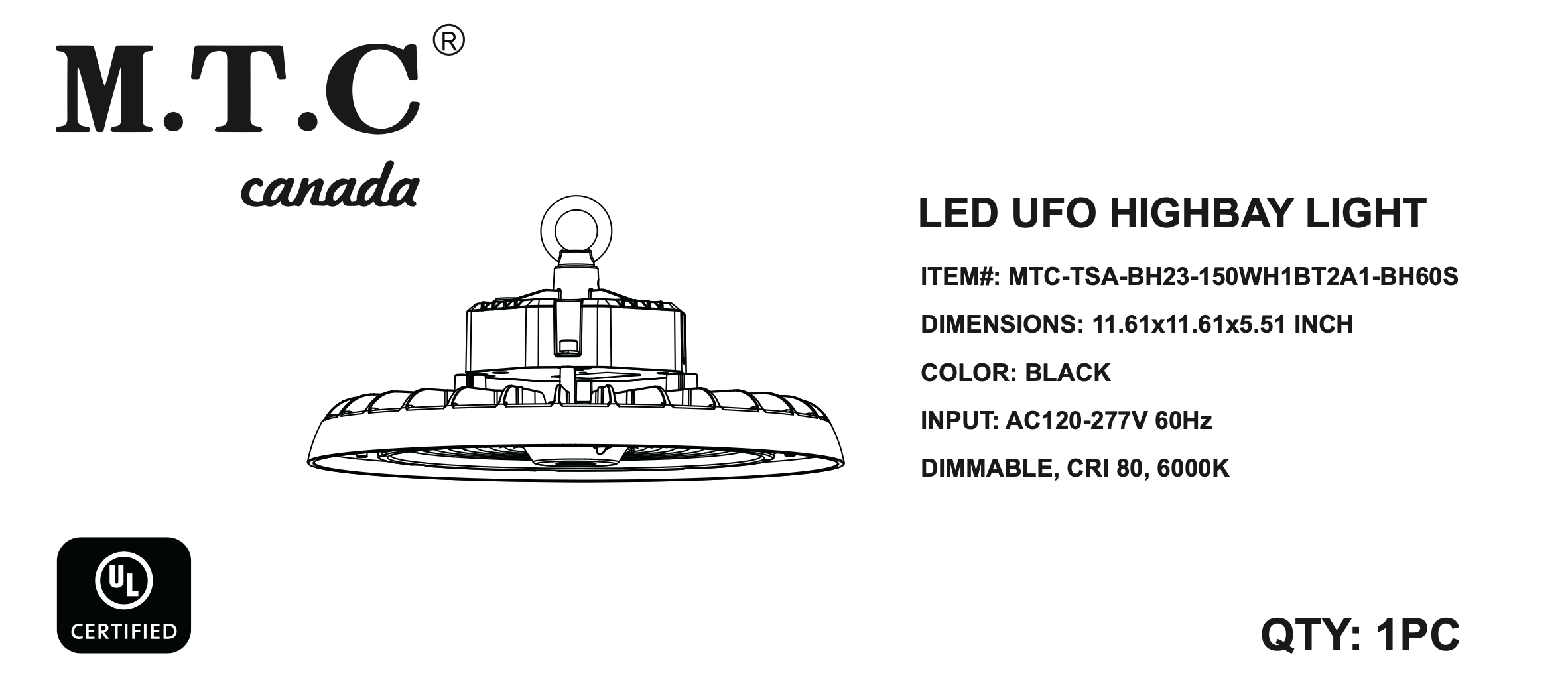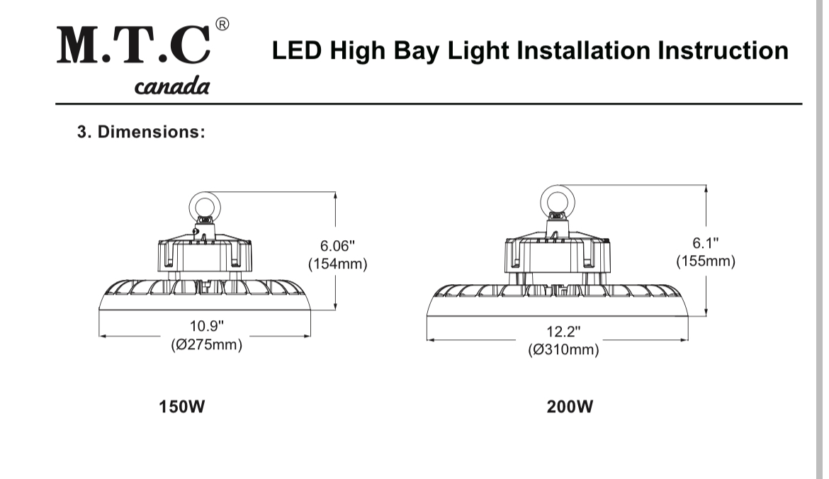 LED High Bay Light UFO 150W 6000K (Cool White)21000Lm Input Voltage 120V-277VAC 3030 LEDComes With Hook Installation IP65 Waterproof Outdoor/indoor CUL CertifiedShip from Our British Columbia Warehouse Canadian Company Canadian Stock