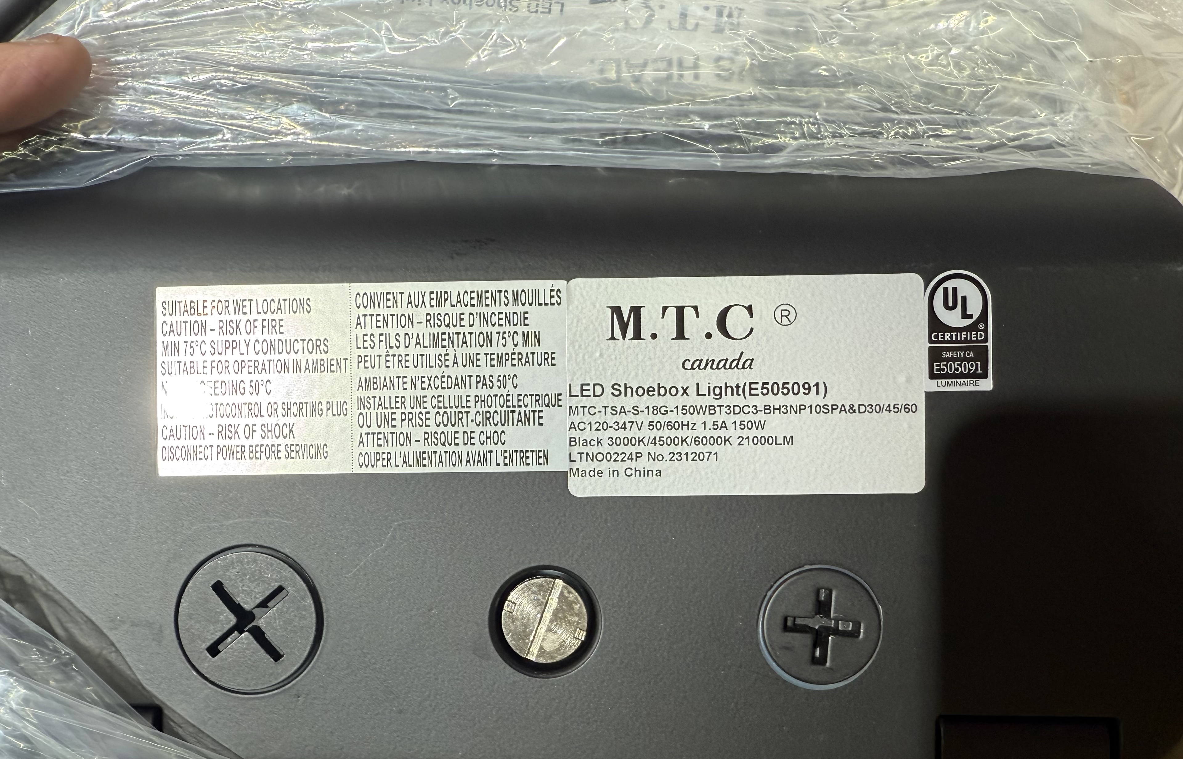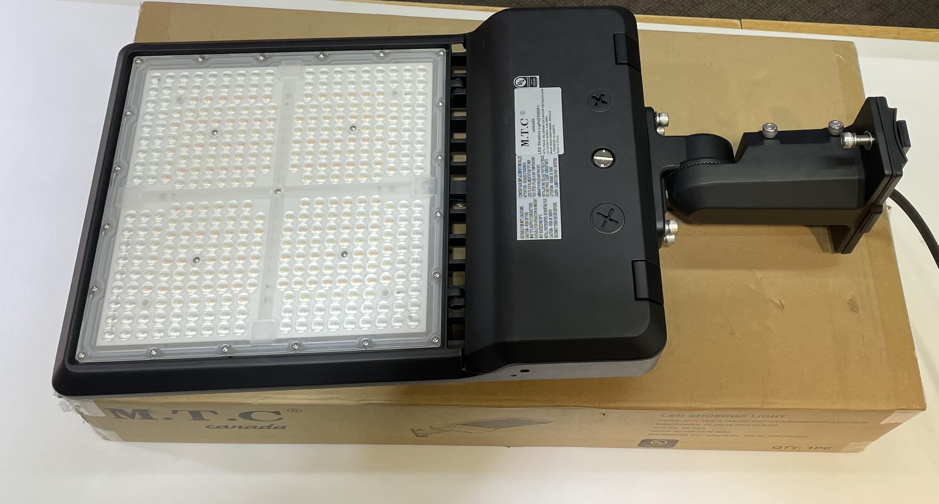 M0725 : M.T.C Canada LED Shoe Box 150W Premium New Advanced Model 21000lm 3cct 3000K/4500K/6000K Bright White Waterproof IP65 Indoor/Outdoor, Input Voltage 100-277VAC/347VAC With Photocell Sensor CUL Certified For Canada