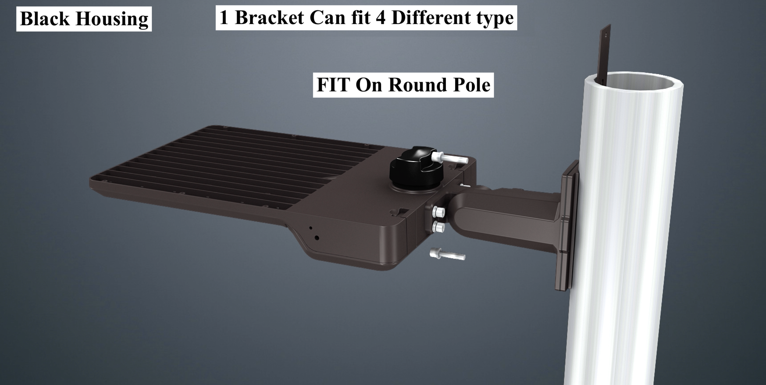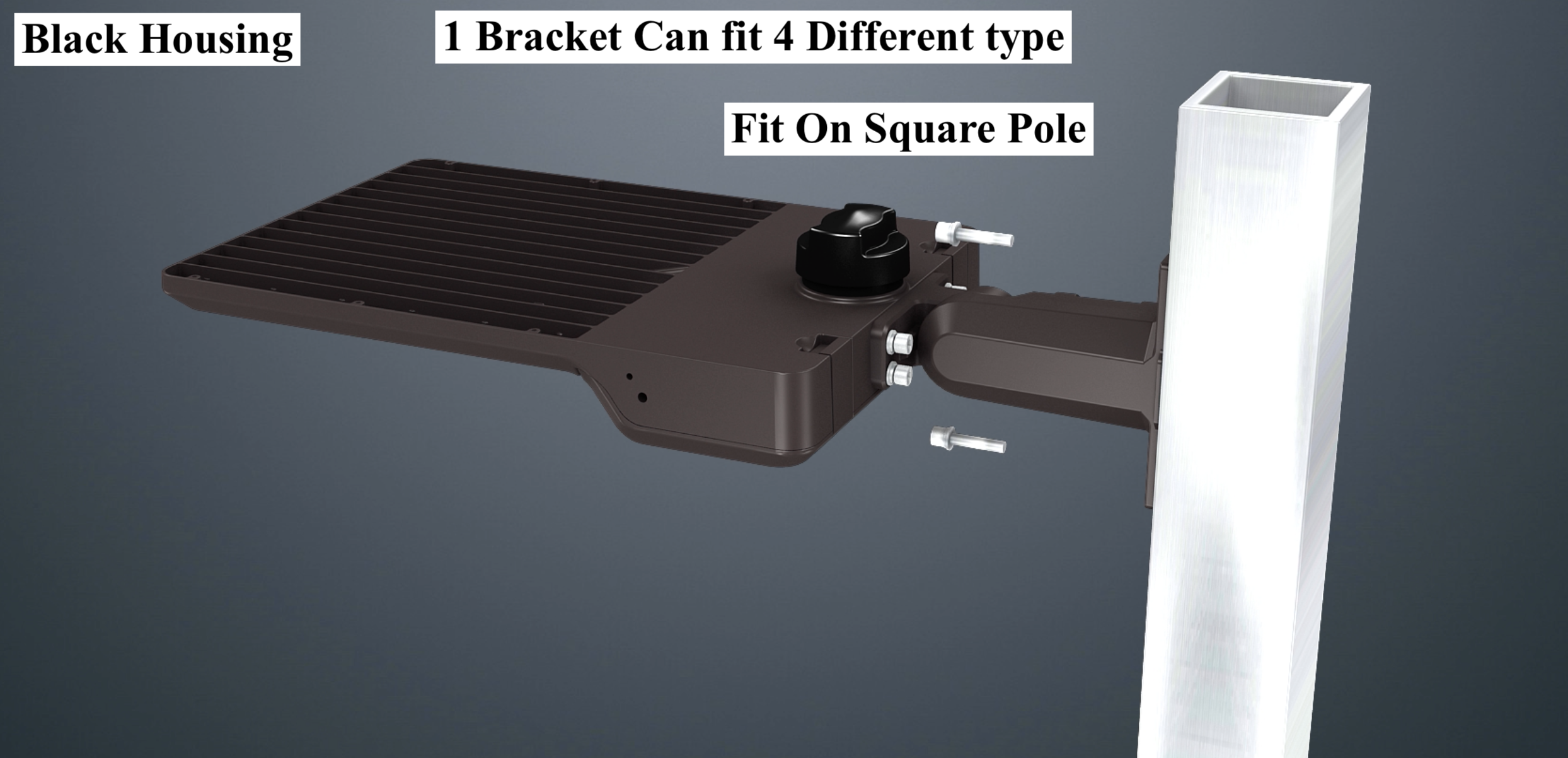 1) Fit On Square Pole 2) Fit On Round Pole 3) Fit On slip On filter 4) Fit on Wall Surface