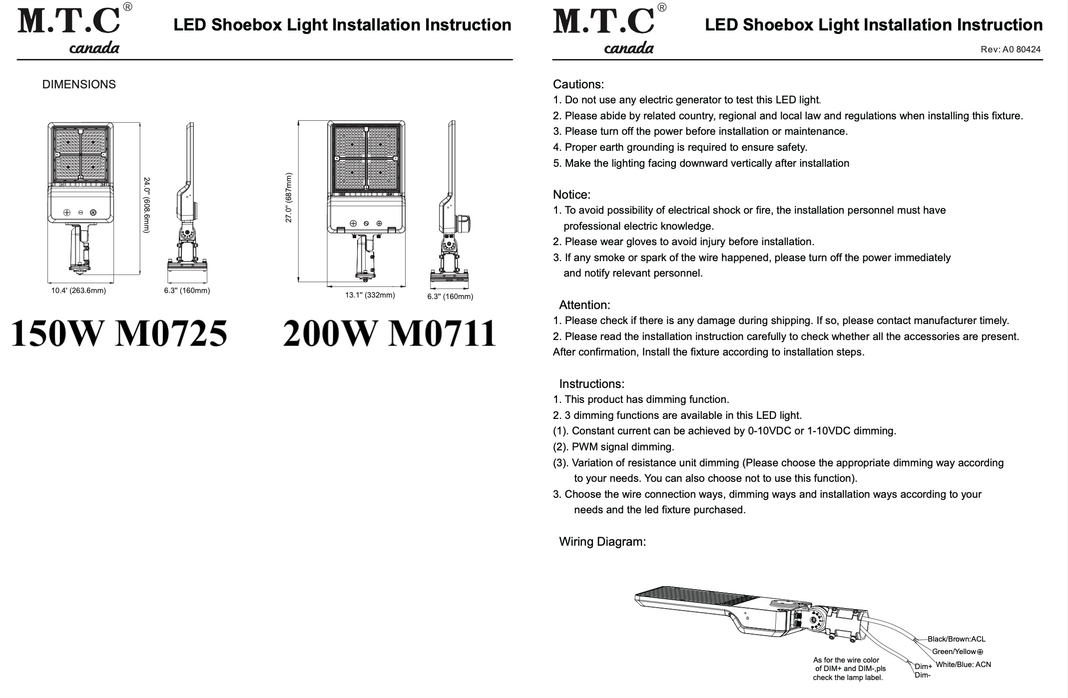 Note : This Model Comes 2 Sizes If need 150W Then Choose M0725 If need 200W Then Choose M0711