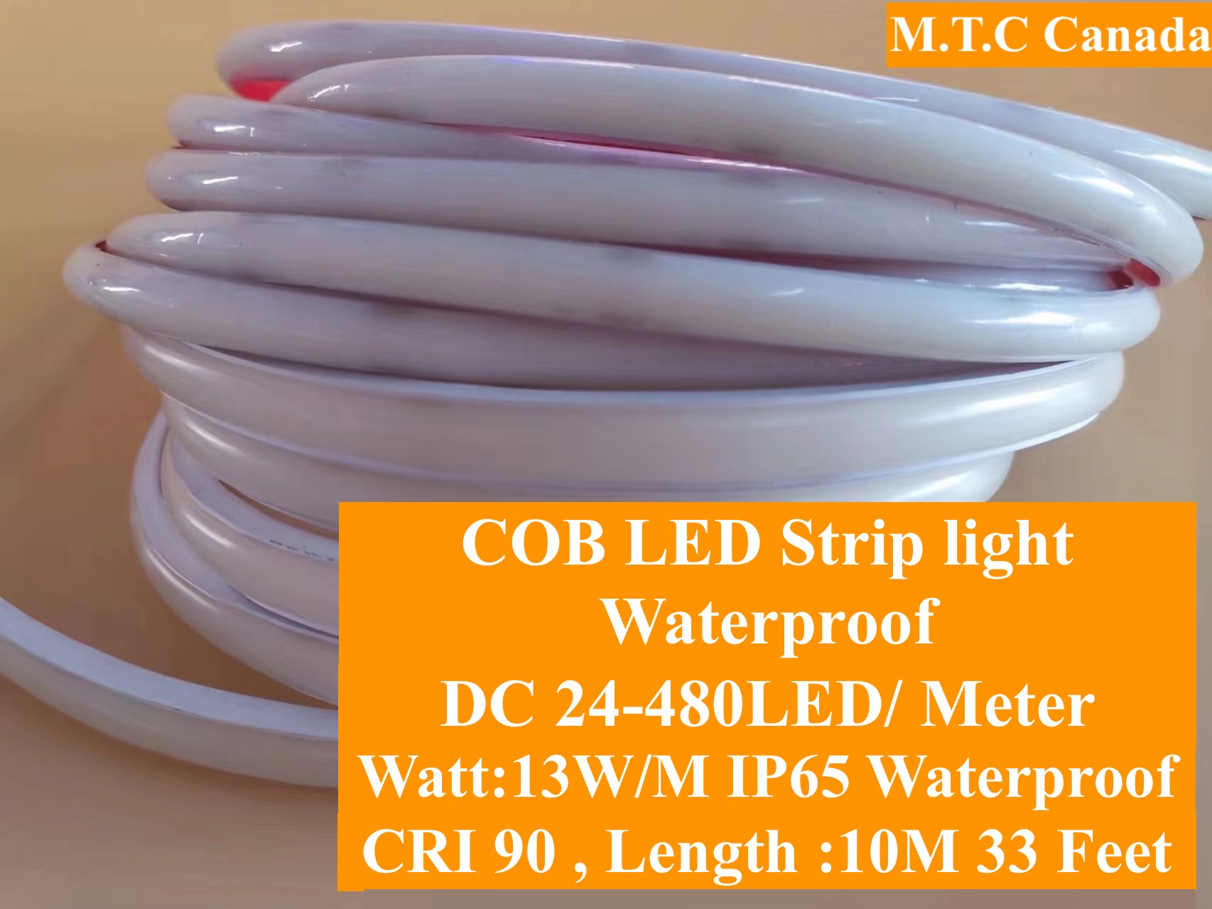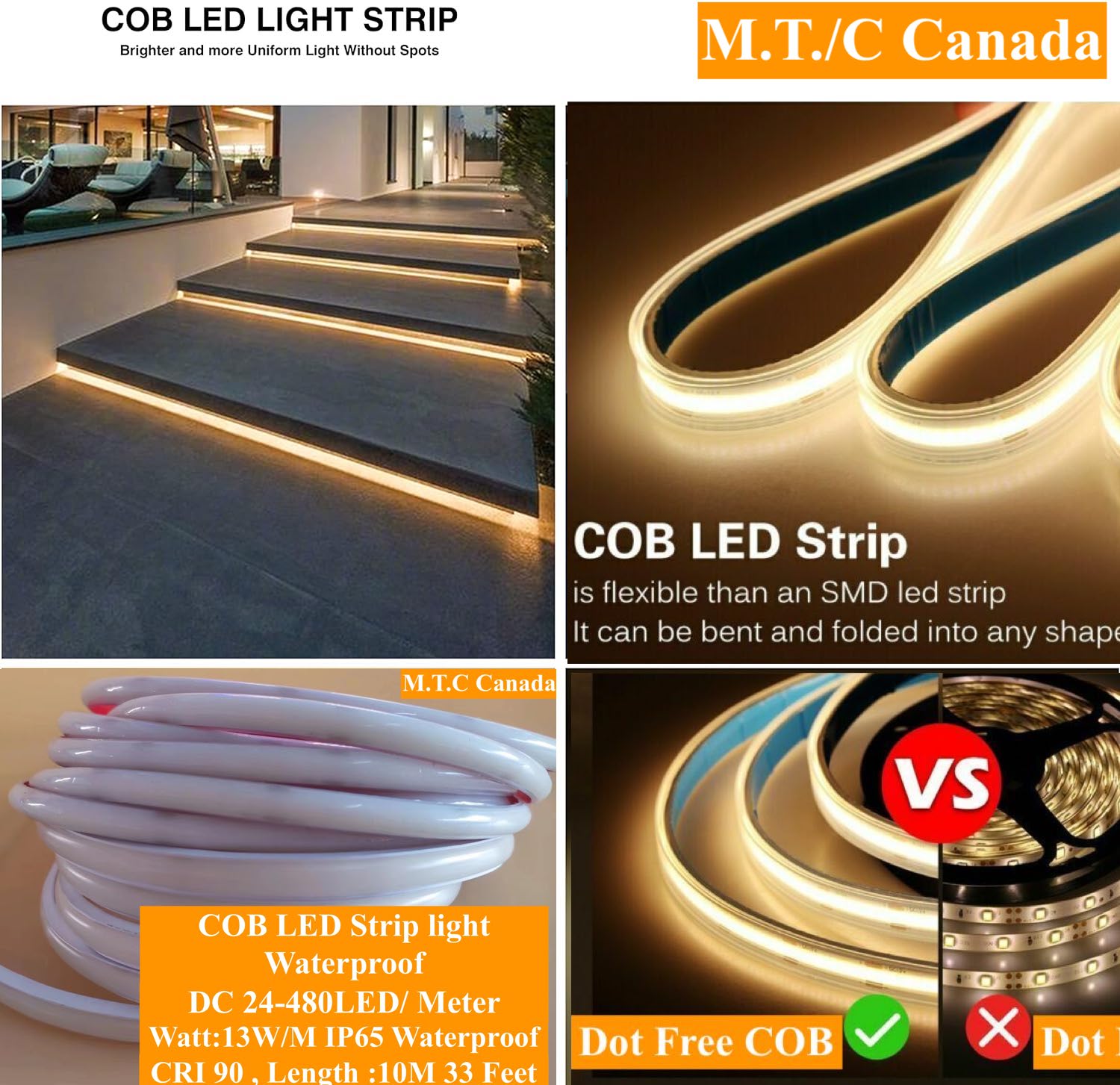 M0730 : M.T.C Canada LED Strip light COB Dot Free 10M ( 33 FT Roll ) 24VDC 6000K/4000K/3000K 480LED /M 13W/M IP67 Waterproof Outdoor indoor