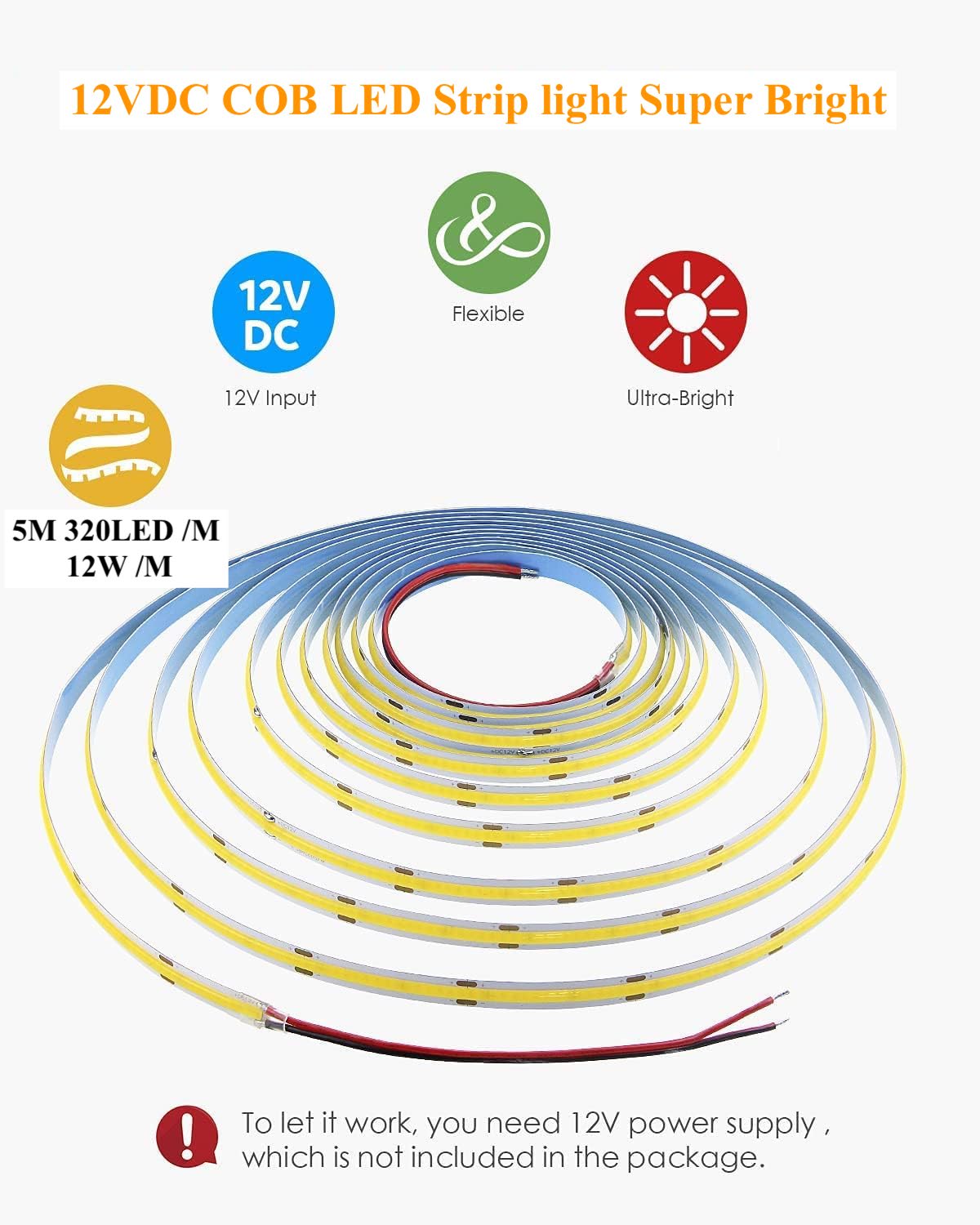 M0739 : M.T.C Canada LED Strip light 12VDC COB 5M 12 watt/M 320led/M Dimmable 2700K/3000K /4000K/6000K