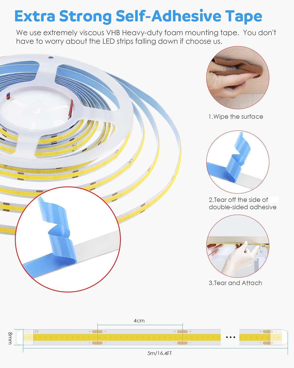 LED Strip Lights, High Density COB LED Strip, Super Bright