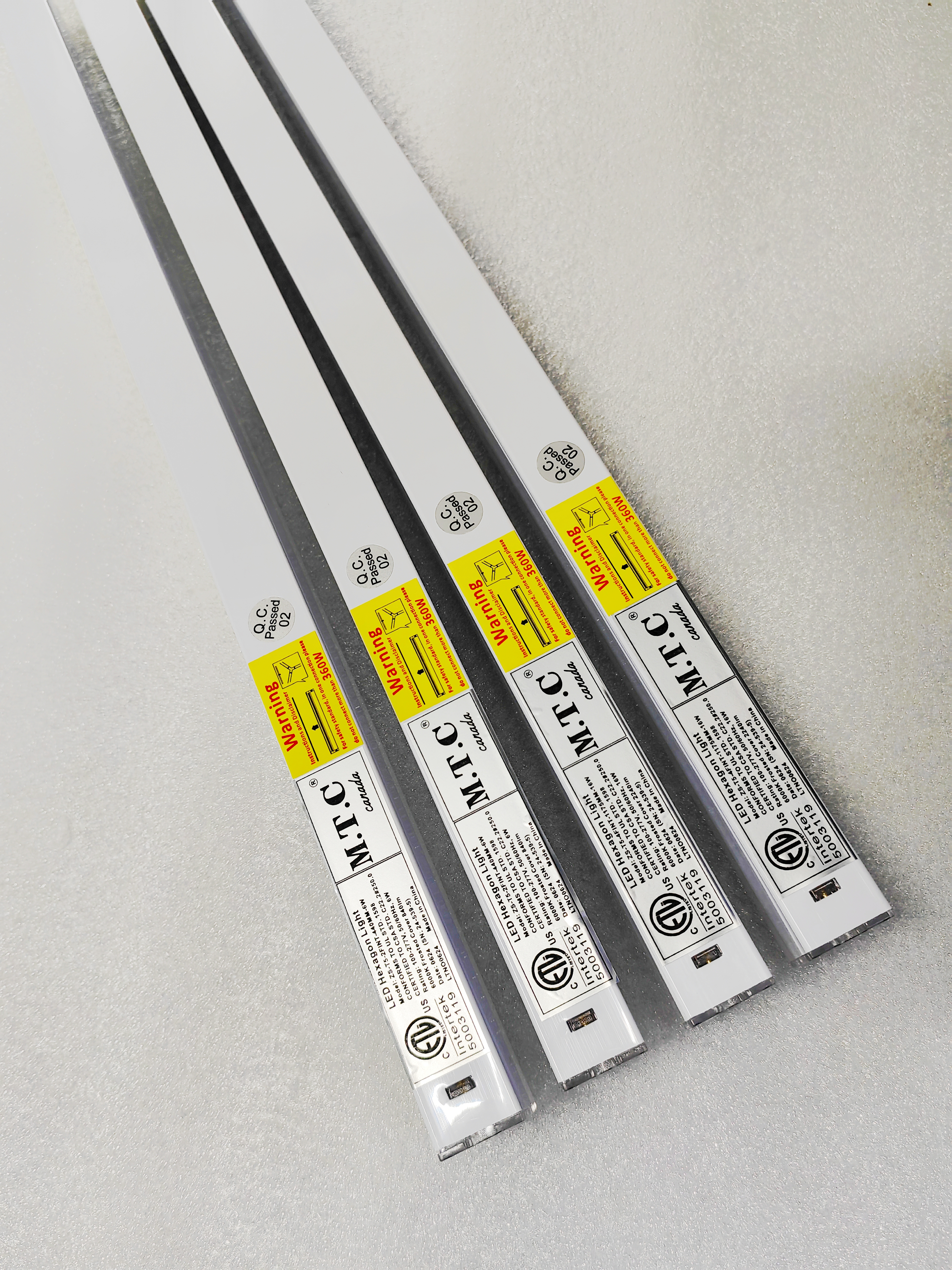 (No outer frame) Input: AC100-277v Tube width: 22mm LM: 140lm/w CRI:>80 CCT: 6000k Full PC Housing Aluminum PCB inside IP44 for Car workshop 18''(440mm): 24pcs 18''(440mm): 6w/pc