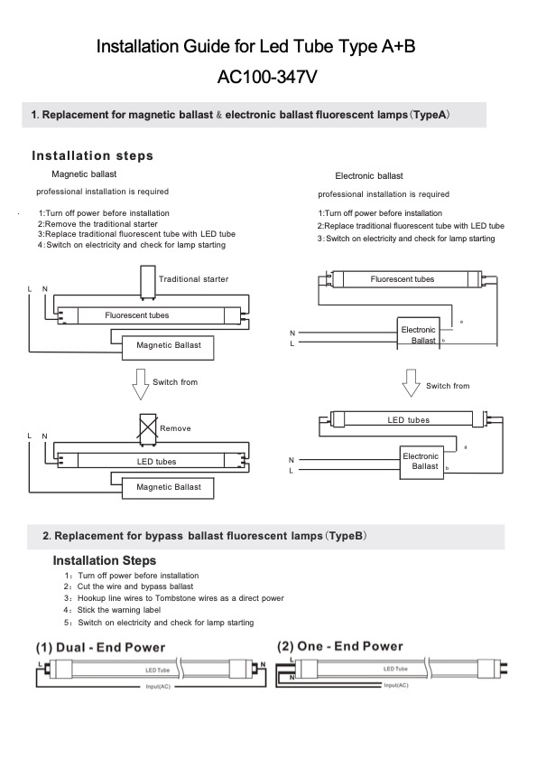 1) Type A Work With Electronic Ballast Please check Compatible List