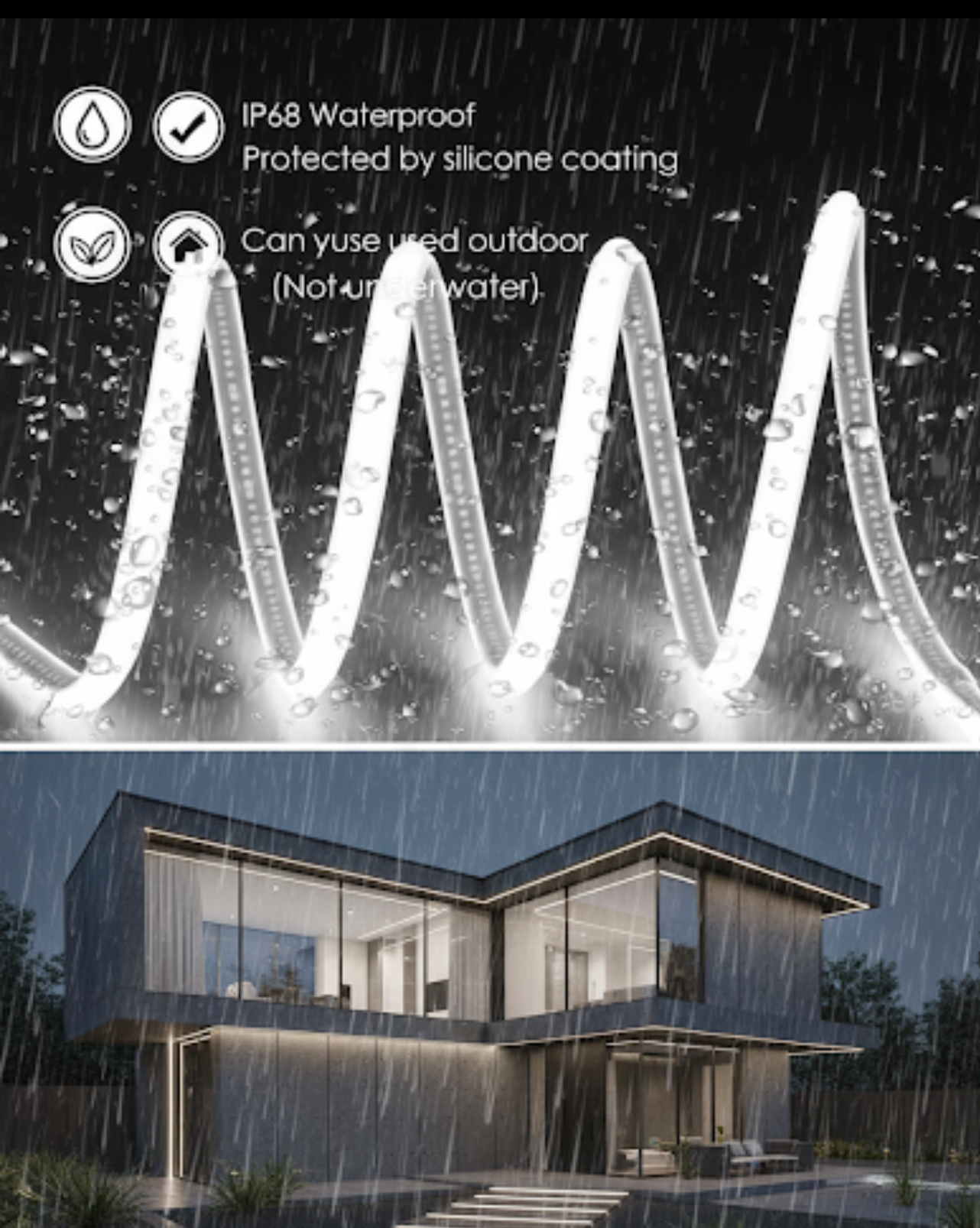 The stripโs IP67 waterproof rating ensures durability against dust and moisture, making it perfect for patios, architectural outlines, signage, workshops, and commercial displays.